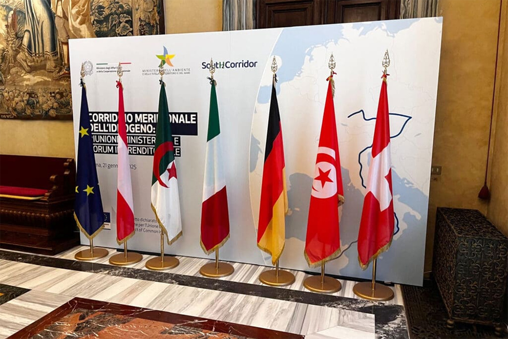 ويُعد ممر SoutH2 نظامًا لأنابيب الهيدروجين بطول 3300 كيلومتر، ويستهدف طاقة استيراد تبلغ 4 ملايين طن سنويًا من الجزائر إلى جنوب ألمانيا، ويتولى تطوير المشروع مشغلو أنظمة النقل “سنام” (إيطاليا)، و”بايرنيتس” (ألمانيا)، وخط أنابيب الغاز عبر النمسا، وشركة “غاز كونيكت النمسا” (النمسا).