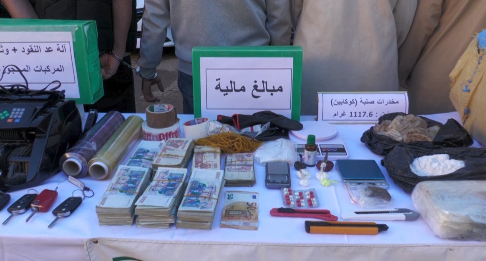 وخلال هذه العملية الأمنية المحكمة، تم حجز 555 كلغ من الكيف المعالج، إضافة إلى 1.117 كلغ من مادة مجهولة النوعية و532.5 غرام من مسحوق أبيض اللون يُشتبه أنه كوكايين.