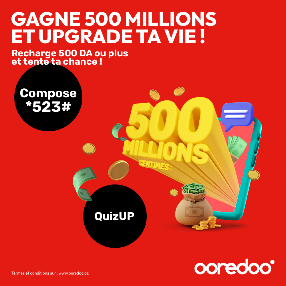 فمع كل عملية تعبئة رصيد بقيمة 500 دج أو أكثر، يتلقى الزبون رسالة نصية قصيرة SMS تدعوه للمشاركة مجانًا في المسابقة.