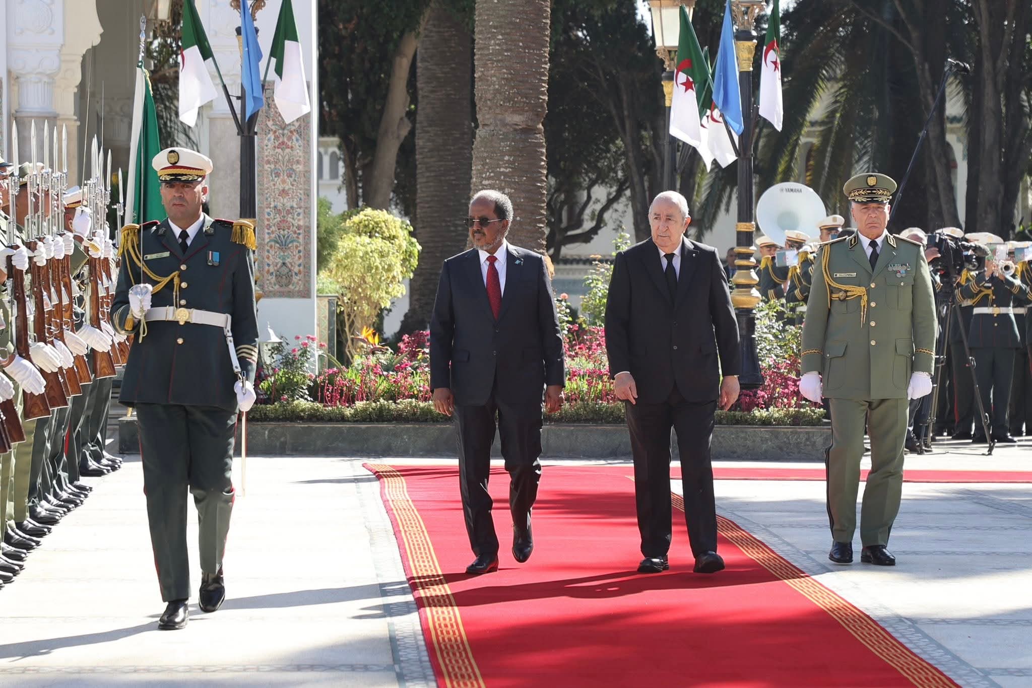 هذا وخص رئيس الجمهورية عبد المجيد تبون، رئيس جمهورية الصومال حسن شيخ محمود، باستقبال رسمي بمقر رئاسة الجمهورية.