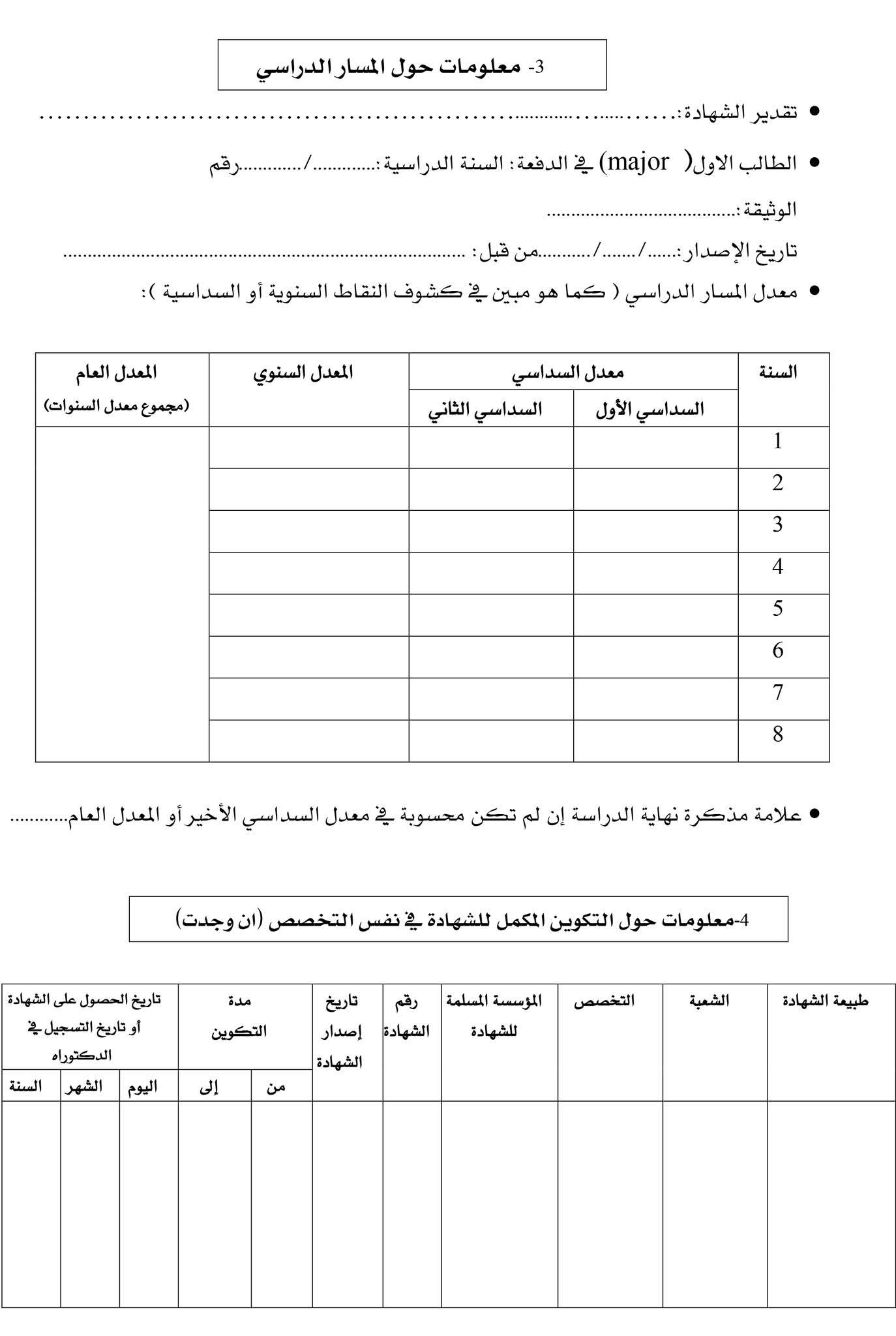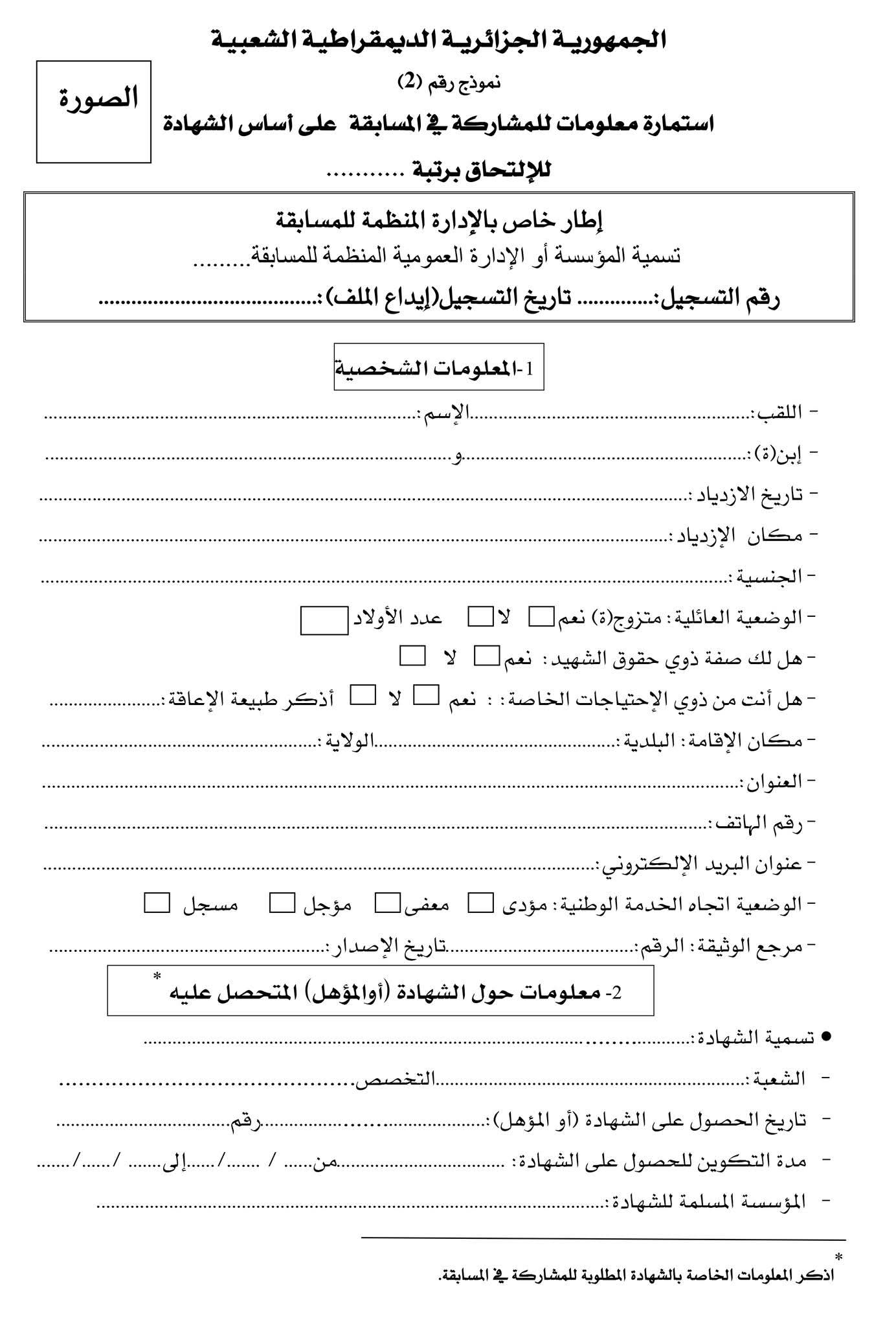 إستمارة المشاركة في مسابقة التوظيف على أساس الشهادة