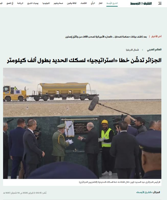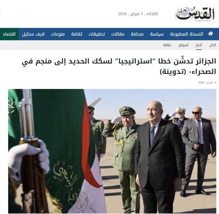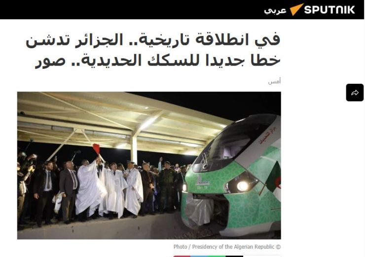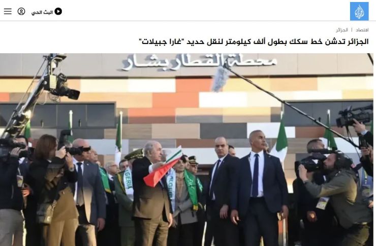 "الجزائر تفتخر بتدشين أضخم المشاريع الاستراتيجية في تاريخها"، تناول فيه بدء استغلال الخط السككيّ المنجميّ الغربي، الممتدّ لنحو 1000 كيلومتر عبر الصحراء الجزائرية، والمصمم لنقل خام الحديد والركاب.