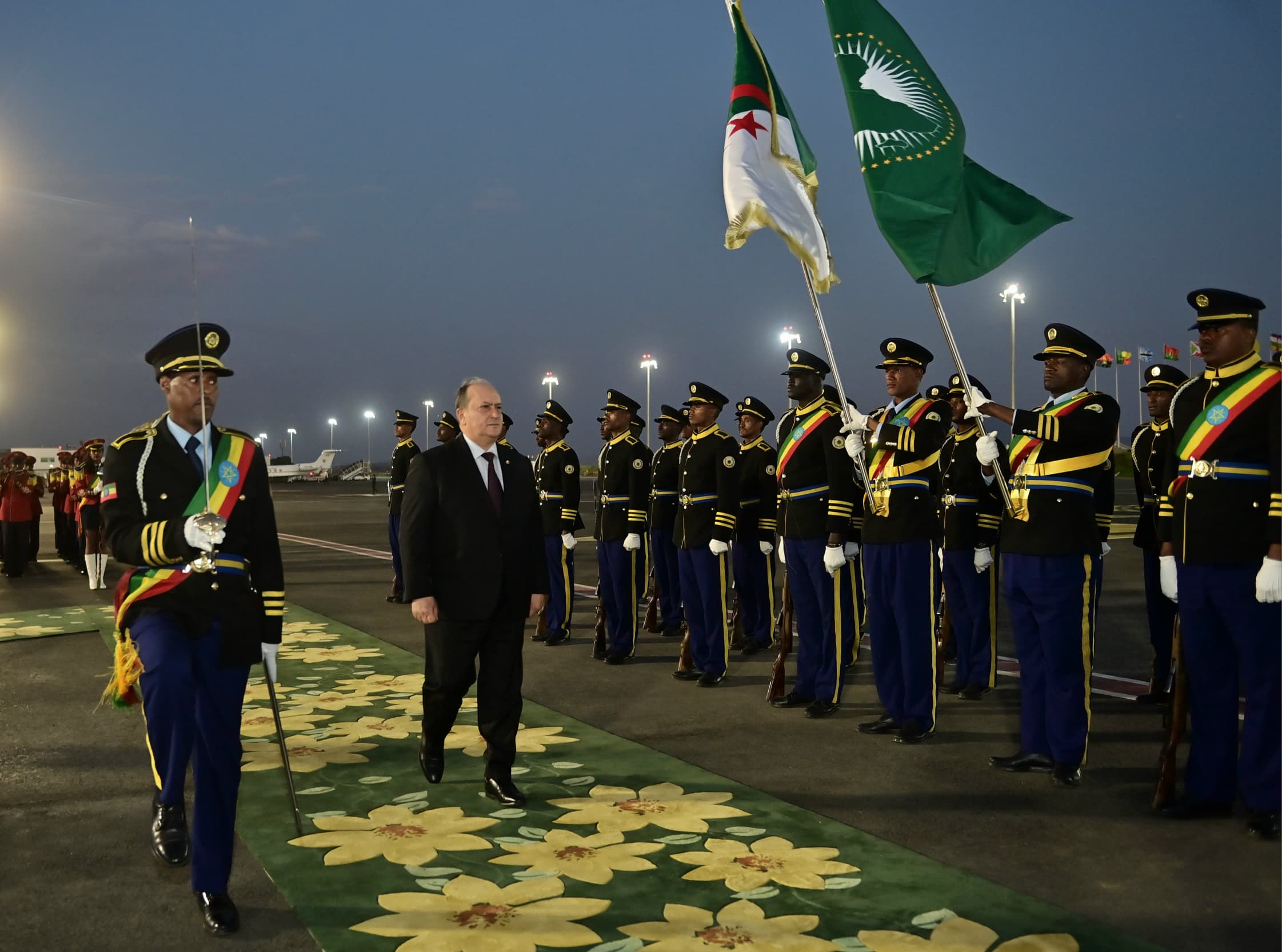 وكان في استقبال الوزير الأول لدى وصوله إلى مطار “بولي” الدولي، وزير الابتكار والتكنولوجيا الإثيوبي بليتا مولى، بحضور وزير الدولة، وزير الشؤون الخارجية والجالية الوطنية بالخارج والشؤون الإفريقية، أحمد عطاف، وكاتب الدولة المكلف بالجالية الوطنية بالخارج، سفيان شايب، إلى جانب سفير الجزائر لدى إثيوبيا.