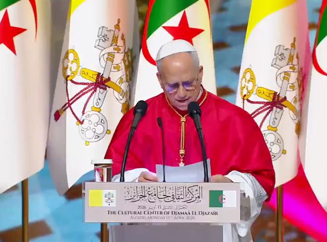 الجزائرالٱن _ في مشهد يعكس عمق الرمزية الدينية والحضارية، ألقى عبد المجيد تبون، رئيس الجمهورية، كلمة رسمية من جامع الجزائر ، بحضور قداسة البابا ليون الرابع عشر، الذي يقوم بزيارة تاريخية إلى الجزائر.