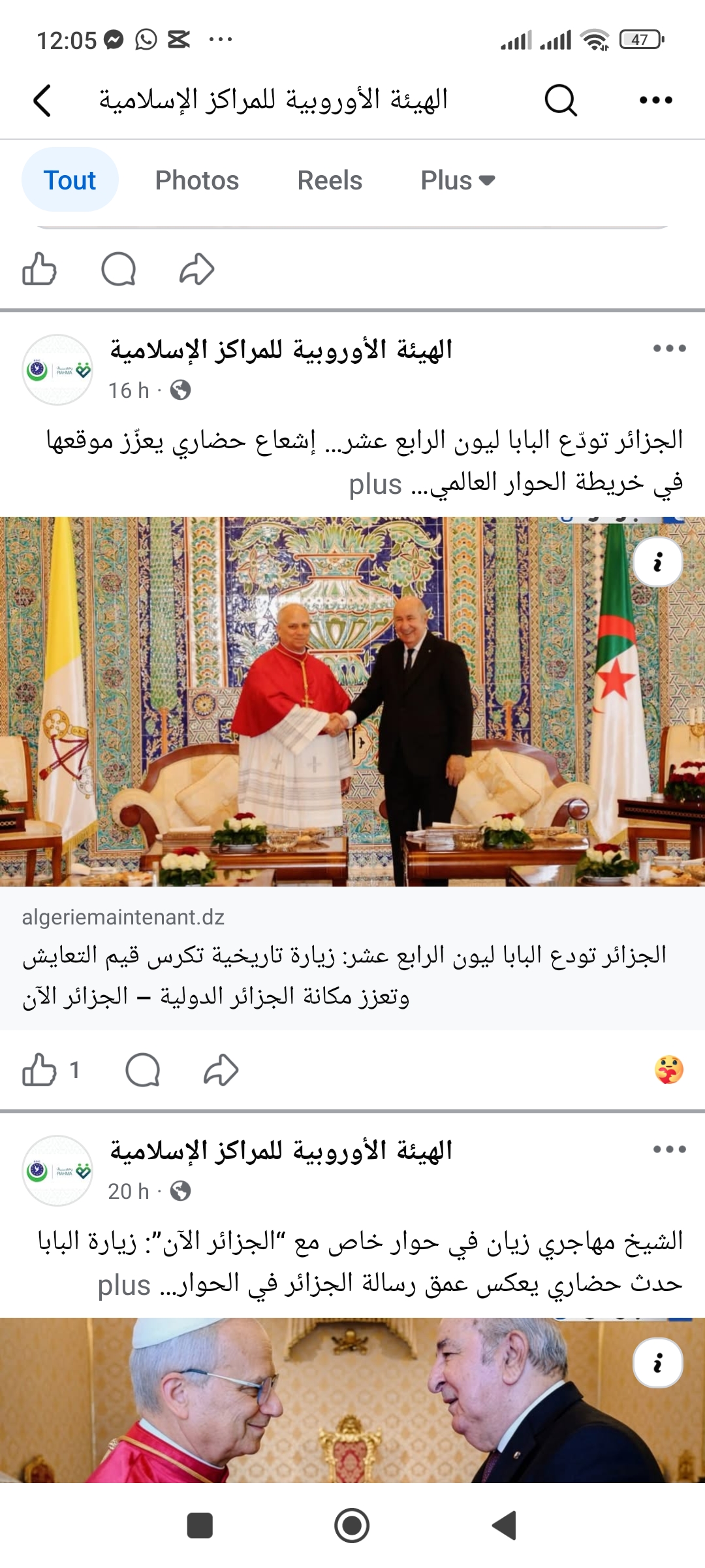 الهيئة الأوروبية للمراكز الإسلامية تحتفي بزيارة البابا للجزائر