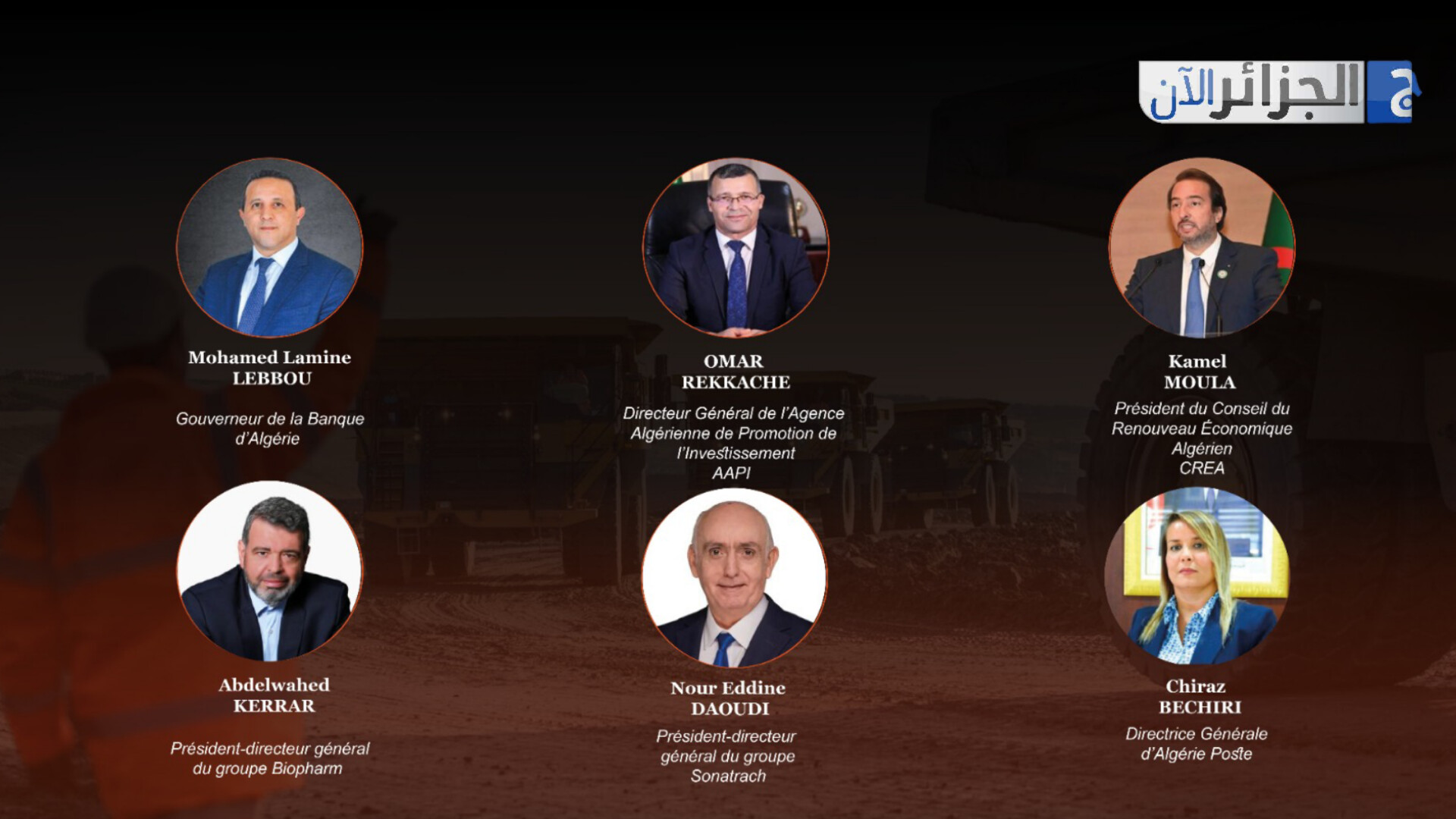 وكمال مولى رئيس مجلس التجديد الاقتصادي الجزائري (CREA)، و ونور الدين داودي الرئيس المدير العام لمجمع سوناطراك ،وشيراز بشيري المدير العام لمؤسسة بريد الجزائر. وعبد الواحد كرار الرئيس المدير العام لمجمع “بيوفارم”.