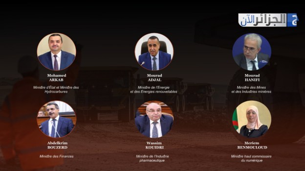 محمد عرقاب وزير الدولة، وزير المحروقات، و مراد عجال وزير الطاقة والطاقات المتجددة ،و مراد حنيفي وزير المناجم والصناعات المنجمية ،و عبد الكريم بوزرد وزير المالية ،و وسيم كويدري وزير الصناعة الصيدلانية ،و مريم بن مولود الوزيرة المحافظة السامية للرقمنة.