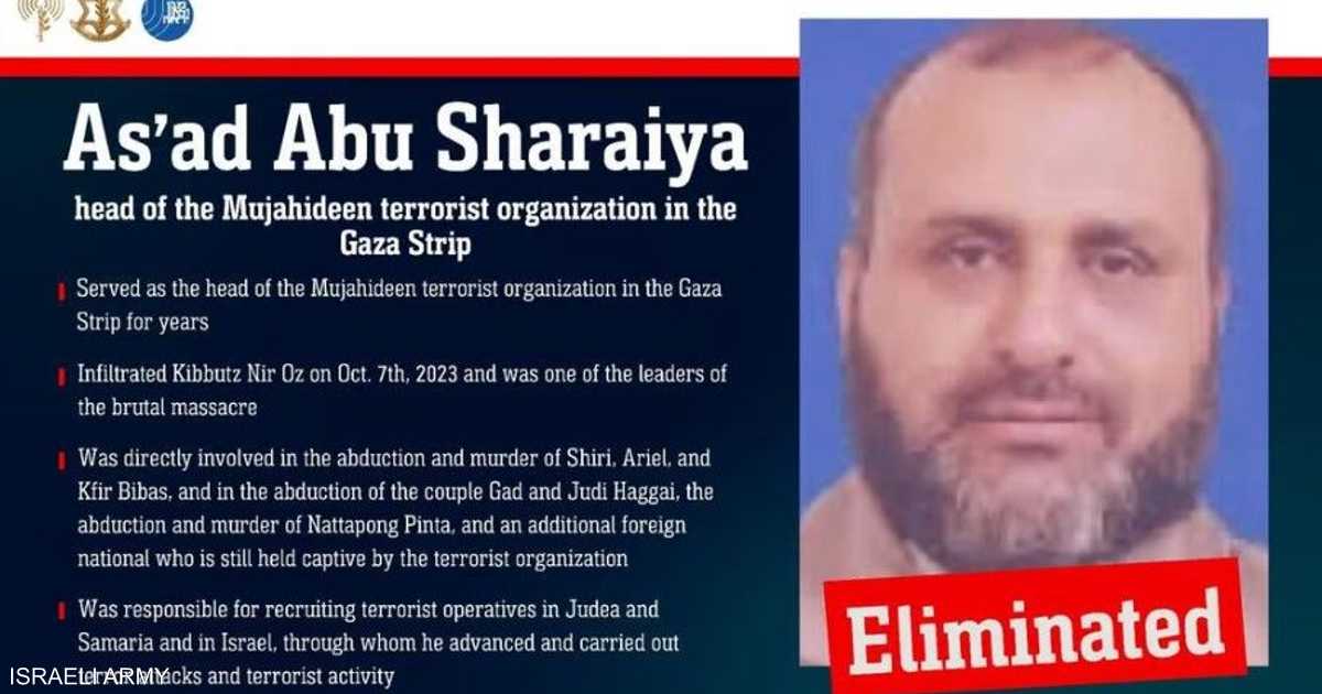 وذكر الجيش الإسرائيلي أنه قتل "قائد كتائب المجاهدين أسعد أبو شريعة" في مدينة غزة شمالي القطاع المدمر، في عملية خاصة مشتركة للجيش وجهاز الأمن الدخلي ( الشاباك).