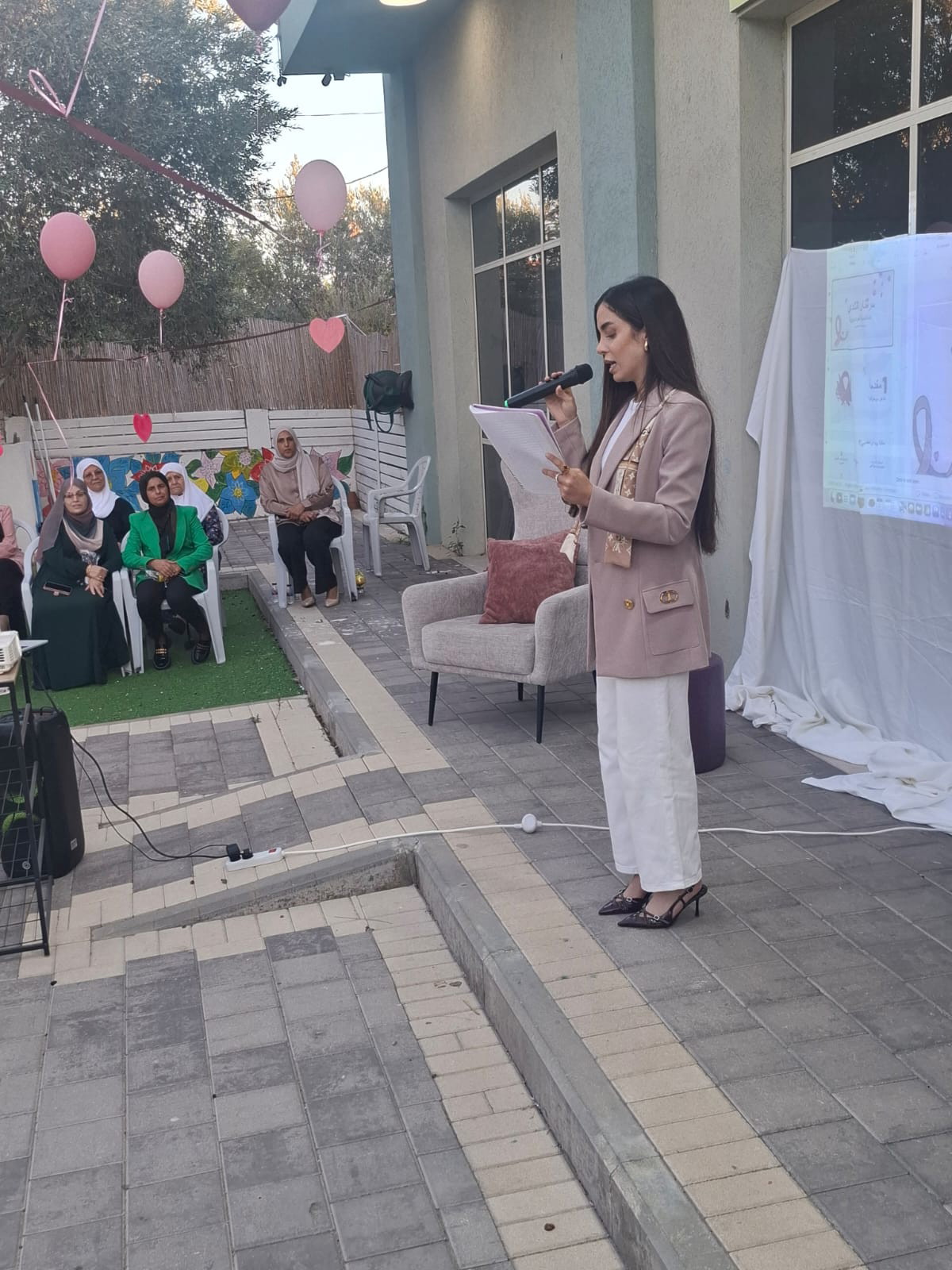 المرشدة الجماهيرية رجاء عمر، التي عملت على إخراج هذه الأمسية إلى حيز التنفيذ، وقدّمت كلمة مؤثرة شكرت فيها المشاركات والداعمين، مشددة على رسالة المشروع في بناء مجتمع متكافل وداعم للمرأة.