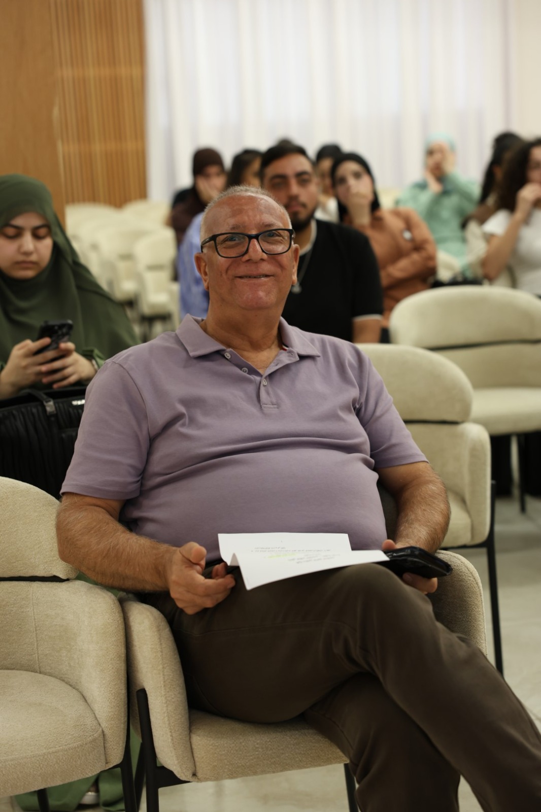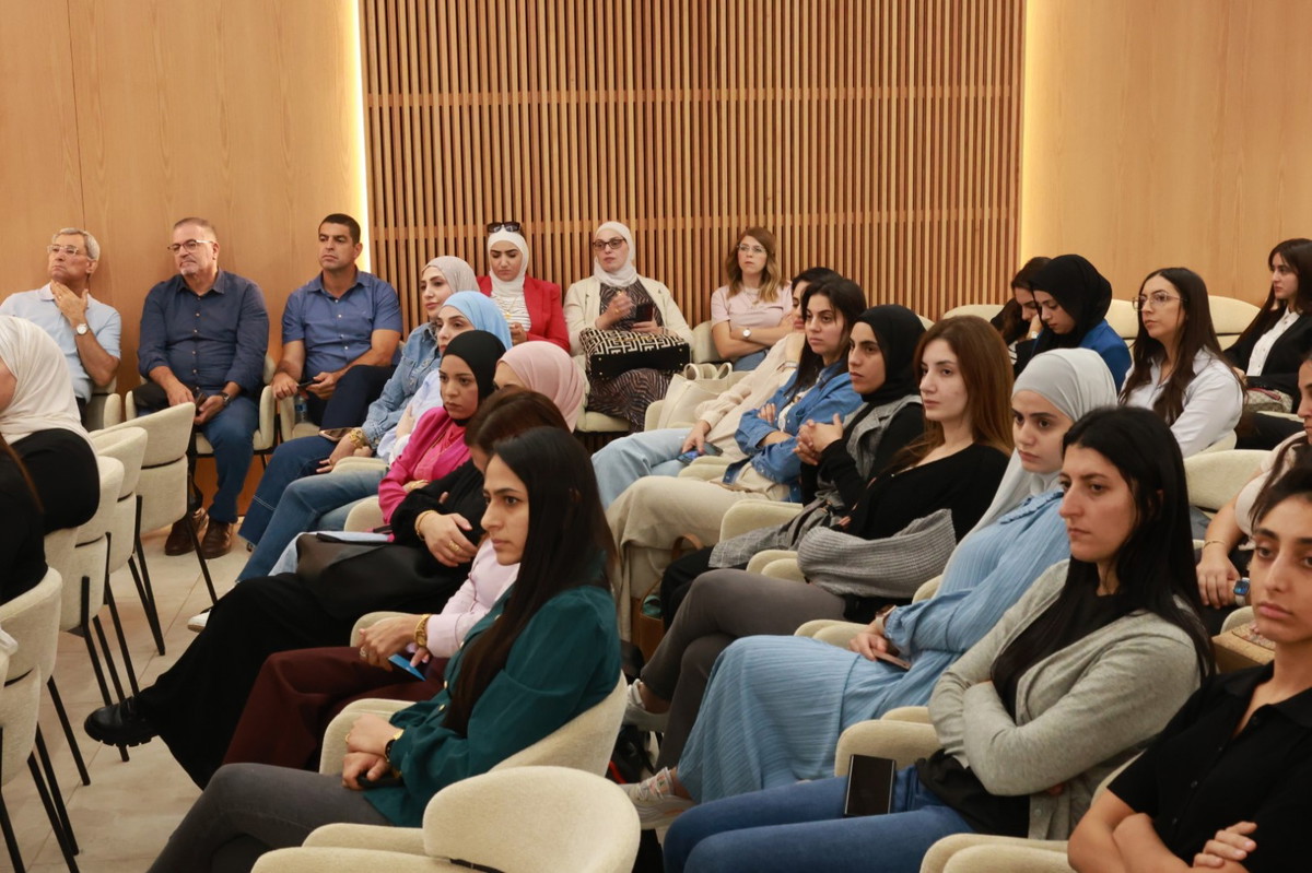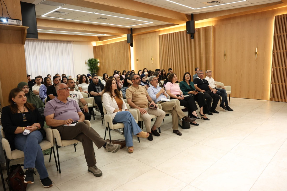 وشهد اللقاء أيضًا مداخلات من البروفيسور فادية ناصر أبو الهيجاء، عميدة الكلّية، والبروفيسور هيثم طه، رئيس قسم الدراسات العليا، اللذين قدّما كلمات تشجيعية ركّزا فيها على أهمية الالتزام الأكاديمي، البحثي، والتفكير النقدي والإبداعي.