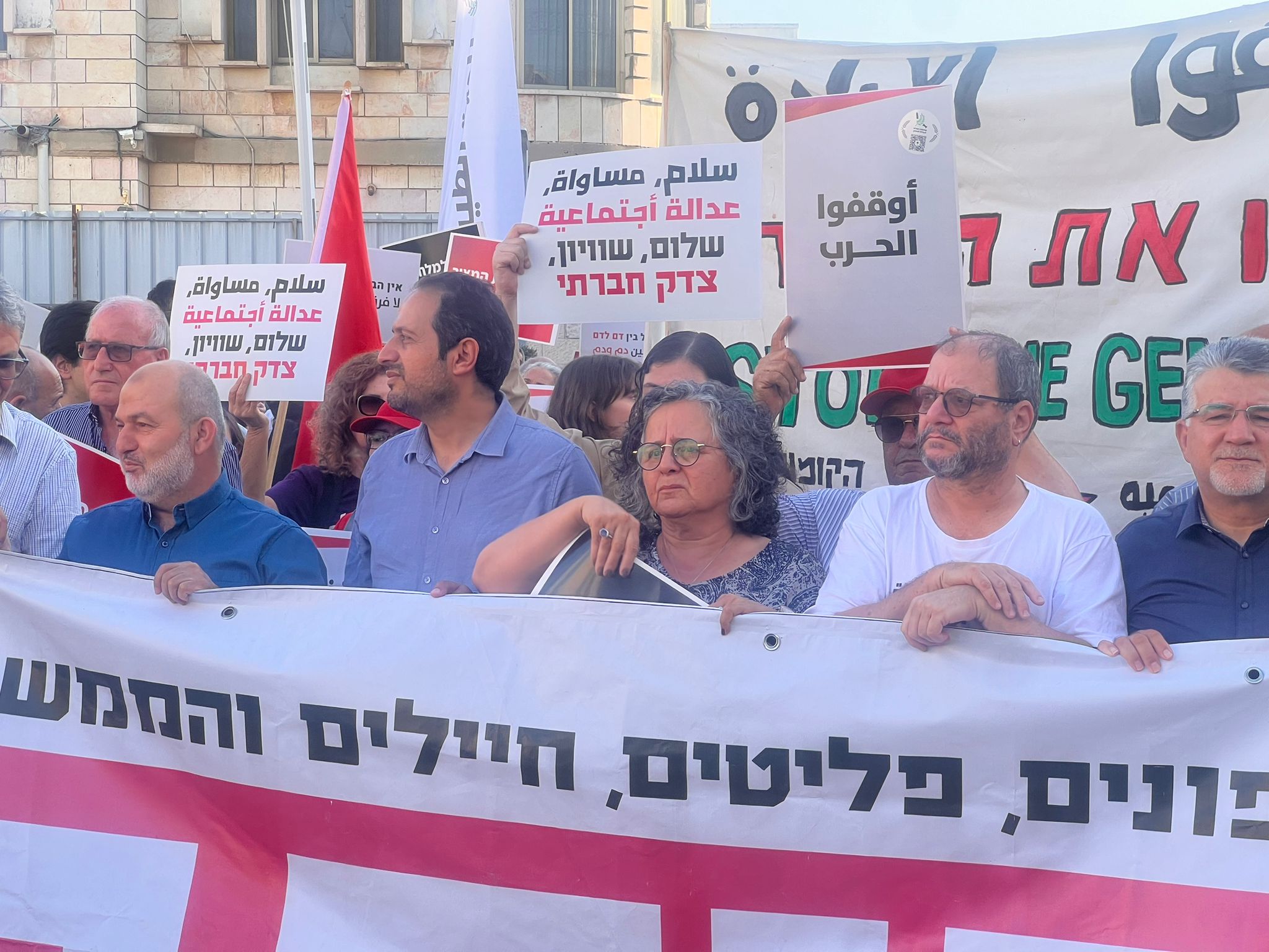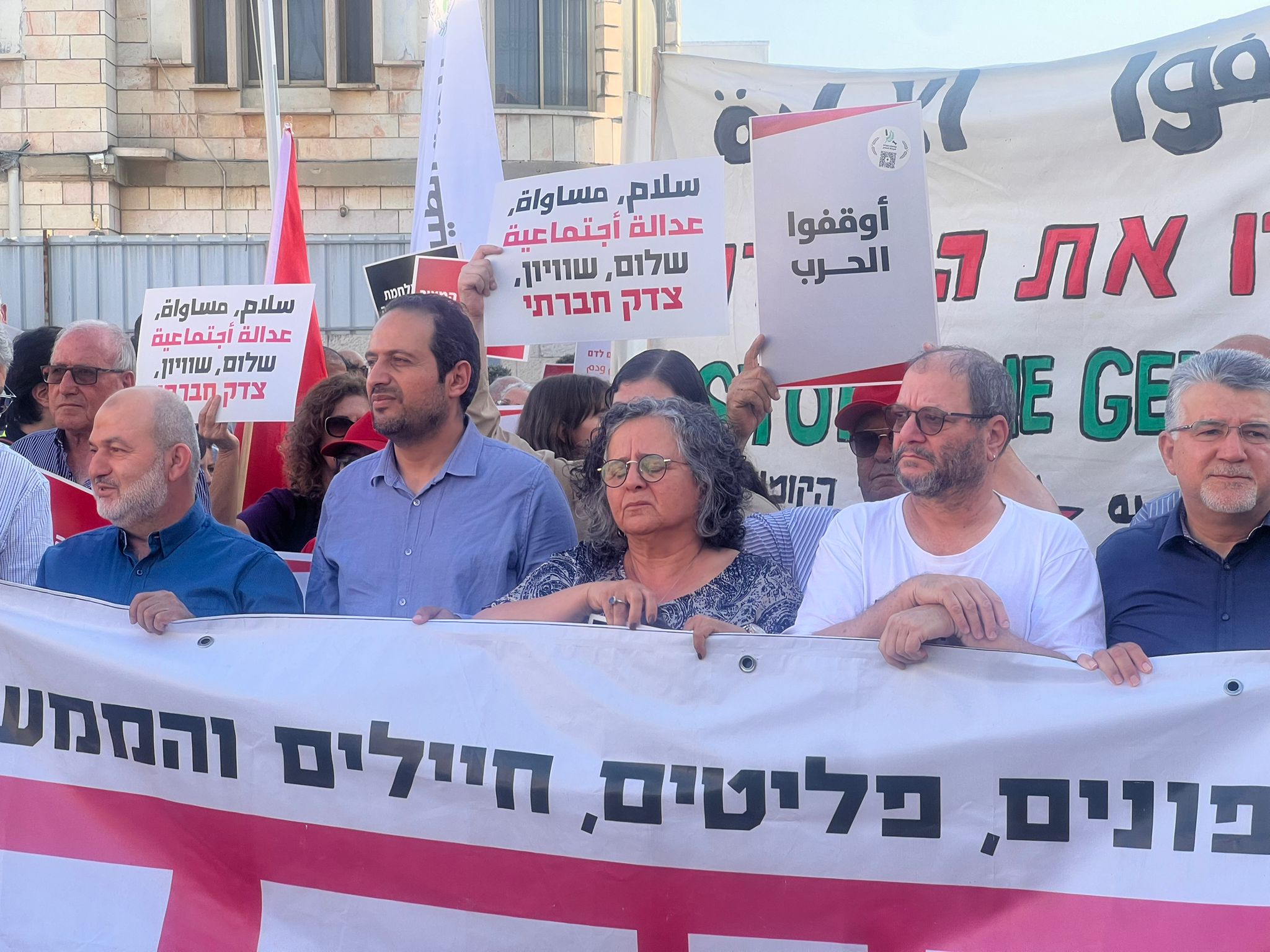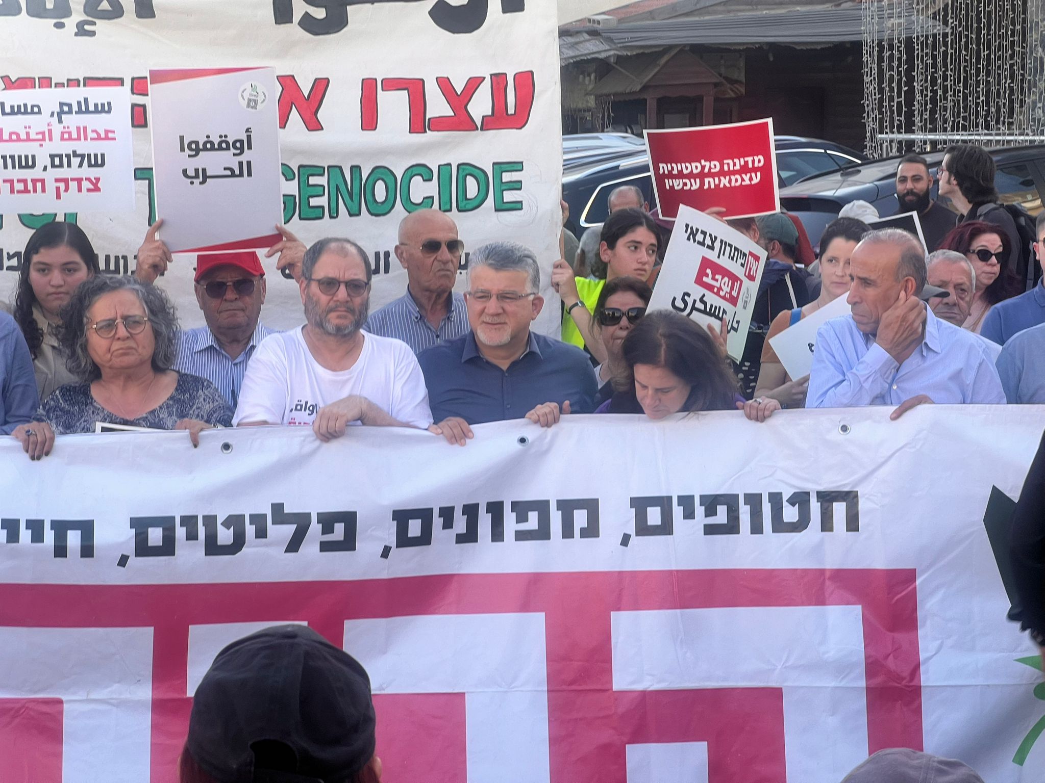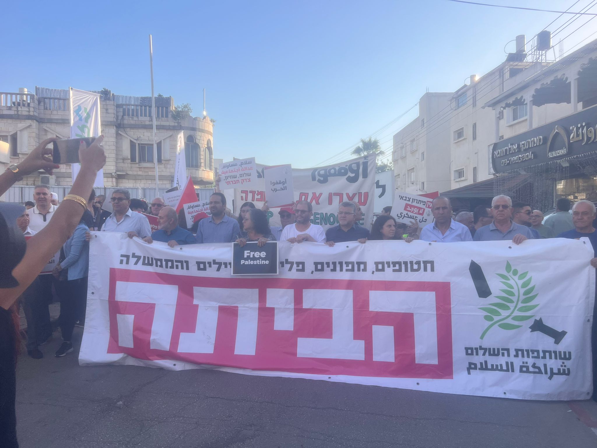 مظاهرة قُطرية عربية يهودية في الطيبة: ‘أوقفوا الحرب‘ - تصوير محمود حجاجرة