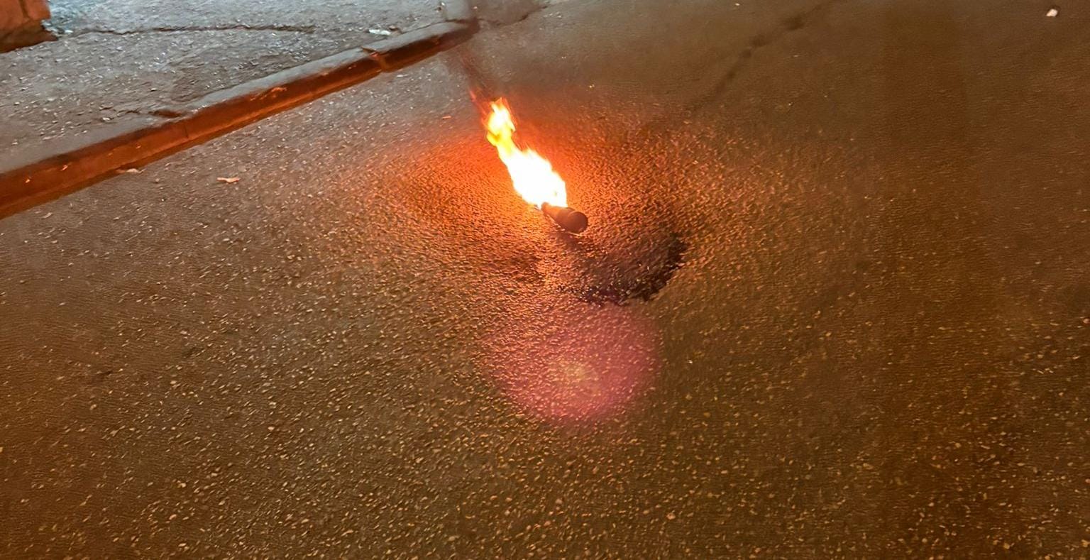 واضاف البيان : " أجرت الوحدة المركزية في لواء القدس مؤخراً تحقيقاً على خلفية حادثتين لإلقاء زجاجات حارقة وقعتا قبل نحو أسبوعين. بحسب الإشتباه، أضرم المشتبه بهم النار في حاويات القمامة، وألقوا الحجارة وزجاجات حارقة إتجاه أفراد شرطة شاليم في لواء القدس وحرس الحدود، وقوات أمن اخرى الذين عملوا في حي العيساوية دون وقوع إصابات أو أضرار" .