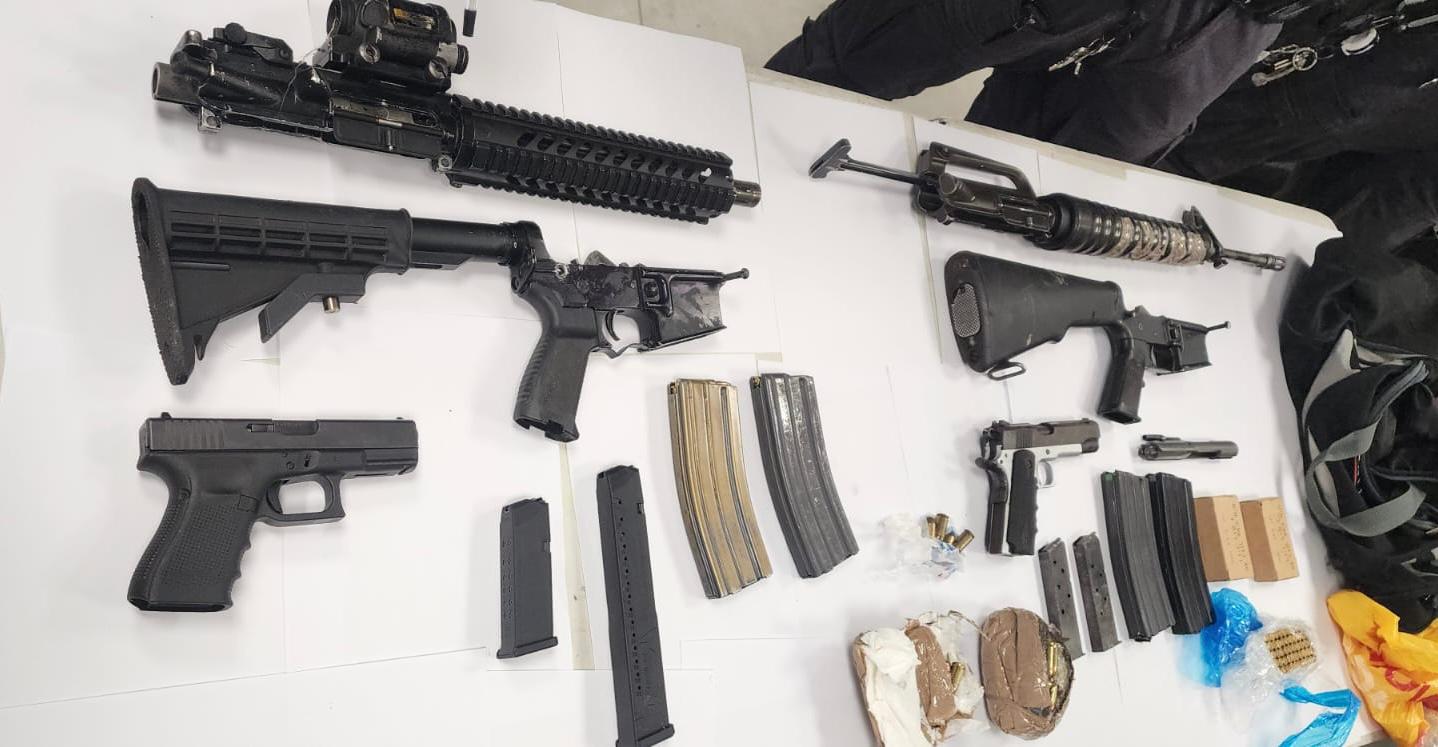 أثناء التفتيش تم ضبط مخزن أسلحة استثنائي، شمل: