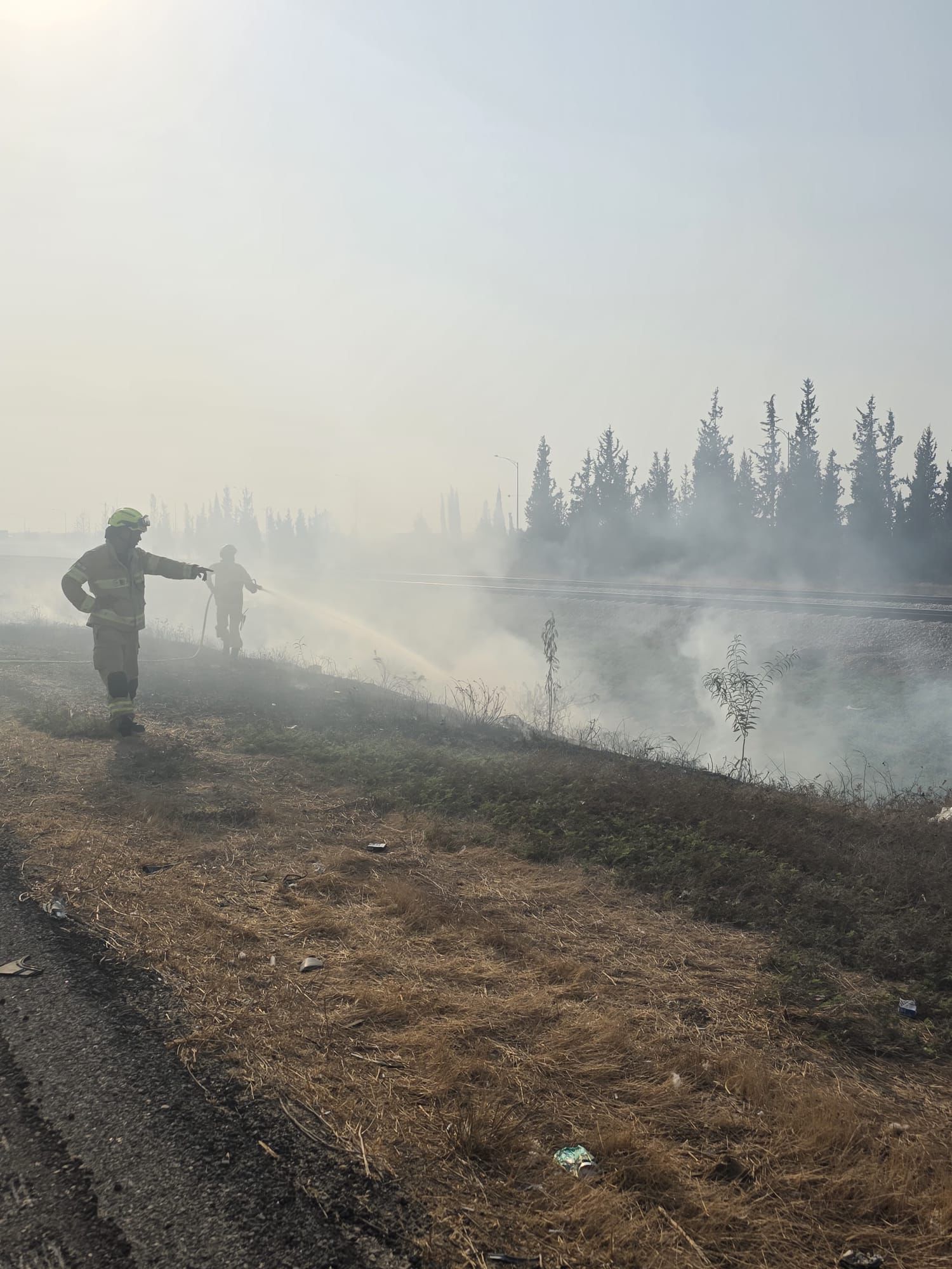 وقال كايد ظاهر الناطق الرسمي للإعلام العربي لسلطة الاطفاء والانقاذ في بيان : " يعمل رجال الإطفاء على إخماد بؤر النيران ومنع انتشارها إلى سكة القطار القريبة وإلى الدفيئات في المنطقة. كما توقفت حركة القطارات " .