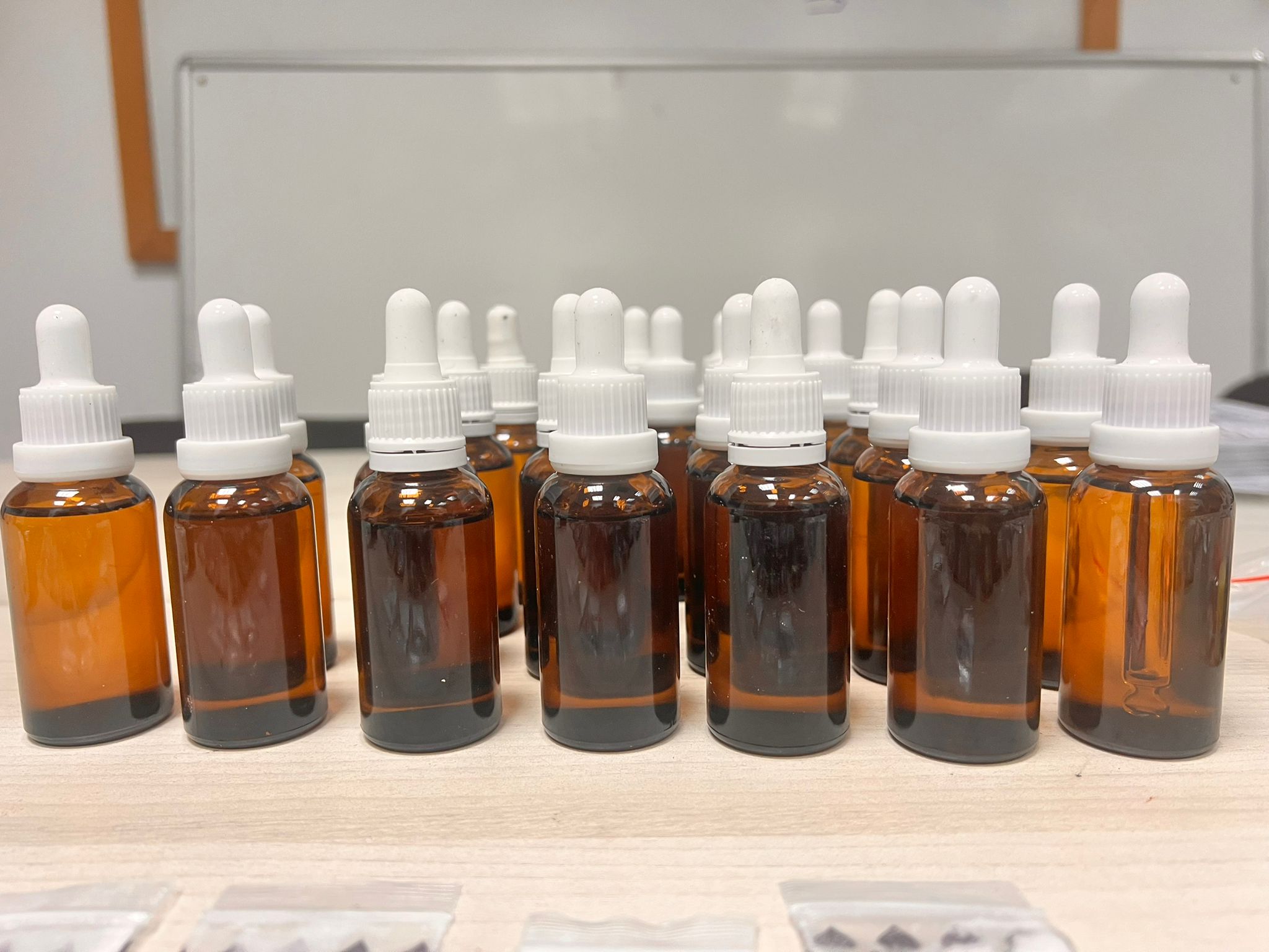 ▪️ مادة يُشتبه بأنها من نوع G (“مخدر الاغتصاب”) – 23 قارورة بوزن إجمالي 1.876 كغم.