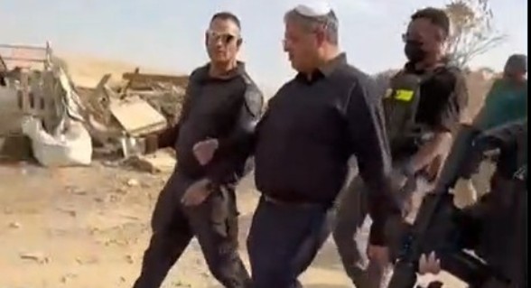 في خطوة استفزازية، قام وزير الأمن القومي المتطرف، أيتمار بن غفير، بتوزيع أوامر هدم وإخلاء لعائلات بدوية في النقب. وأظهرت المشاهد التي تناقلها الإعلام تواجد بن غفير في المنطقة، ووفقًا لما ذكره فإن أوامر الهدم تأتي بسبب "البناء غير المرخص".