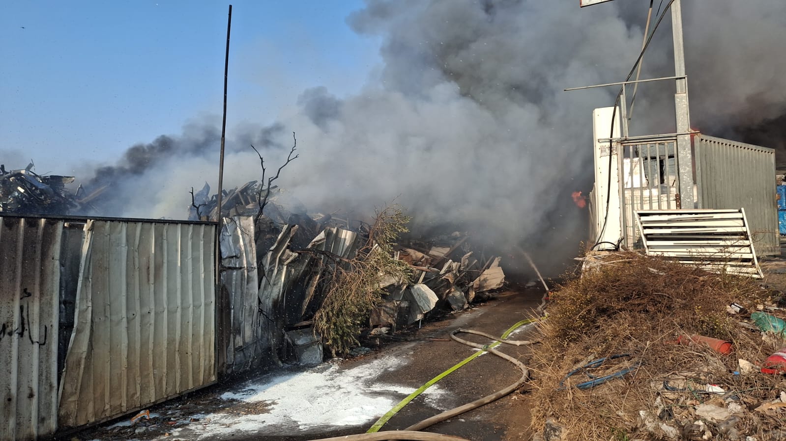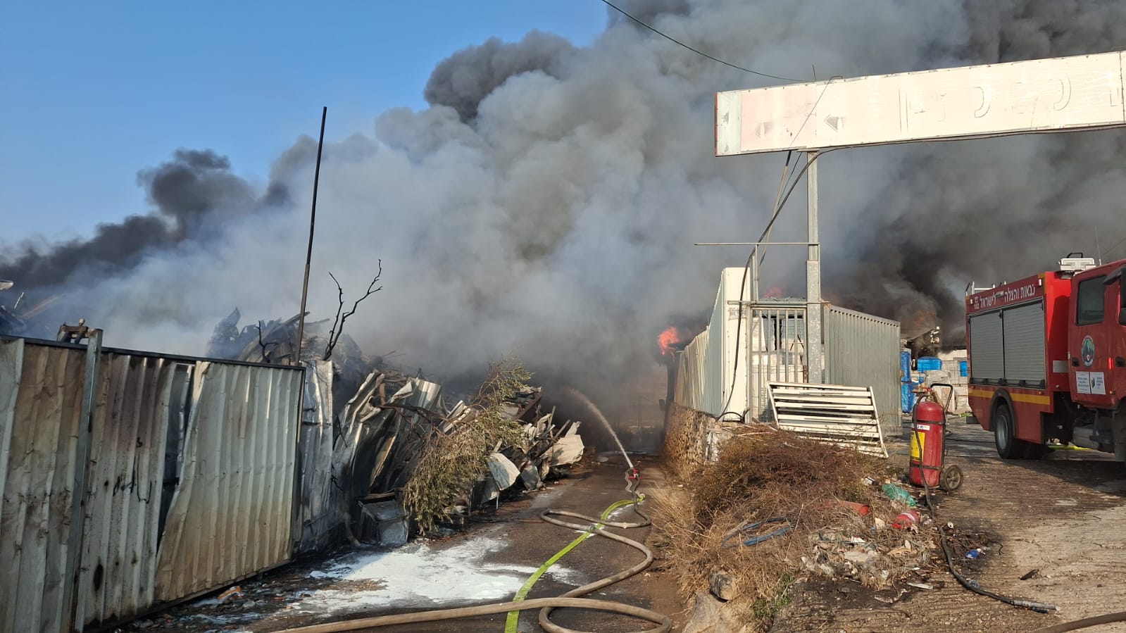 اندلاع حريق كبير بمحل للخردة على طريق عرابة - دير حنا | تصوير: سلطة الاطفاء والانقاذ