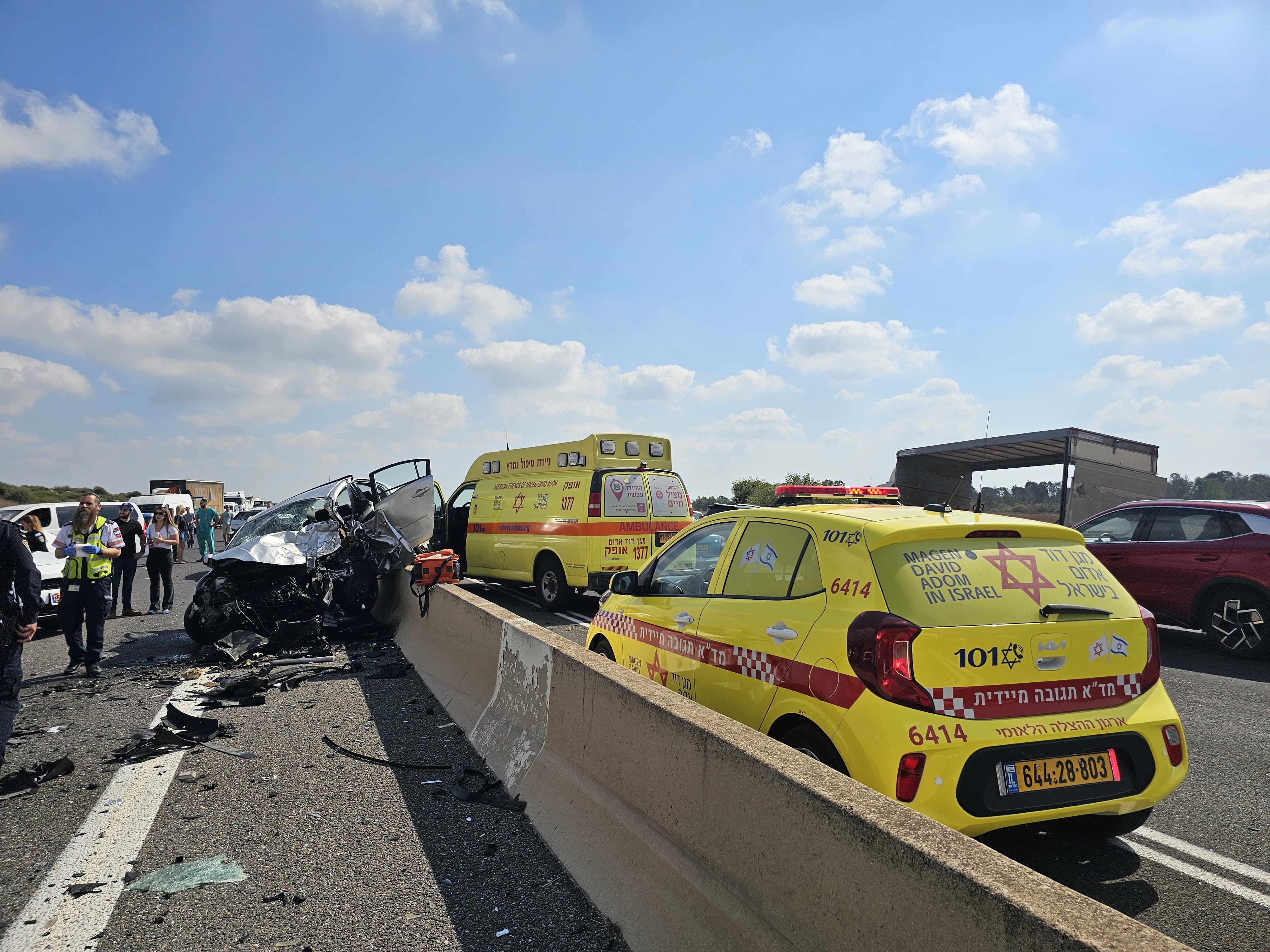 حادث طرق قاتل بالقرب من حيفا : مصرع رجلين وإصابة ثالث جراح خطيرة - الفيديو للتوضح فقط - تصوير : نجمة داود الحمراء