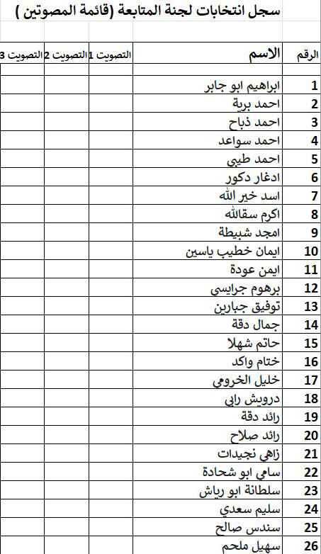 أظهر سجل الناخبين أصحاب حق الاقتراع في الانتخابات لرئاسة لجنة المتابعة التي من المقرر ان تجري يوم بعد غد السبت الموافق 15.11.2025، ان عدد أصحاب حق الاقتراع هو 73 شخصا، بينما يظهر في النظام العام للجنة المتابعة