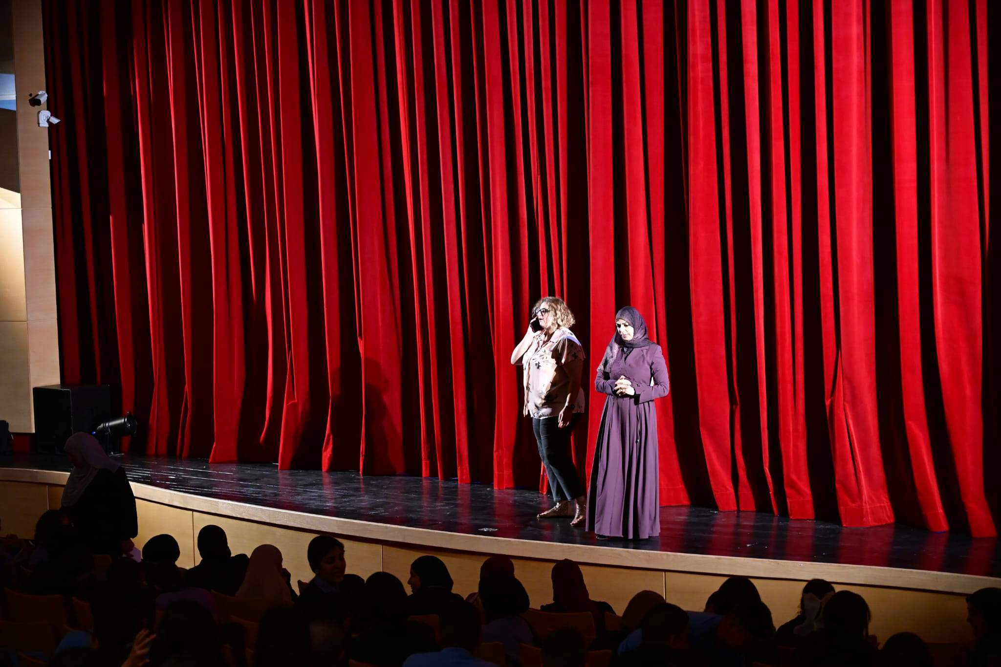 تخلل الندوة عرض مسرحي مميز بعنوان "عيشة ومش عيشة"، قدّم لوحات فنية نابضة بالحياة تجسّد الواقع الاجتماعي المعاش، بأسلوب واقعي صادق كشف عن التناقضات اليومية في حياة الإنسان العربي بين الفرح والانكسار، والضحك والدموع. حملت المسرحية رسالة إنسانية عميقة حول قوة الإرادة والتمسك بالأمل، لتترك أثرًا بالغًا في نفوس الحضور.