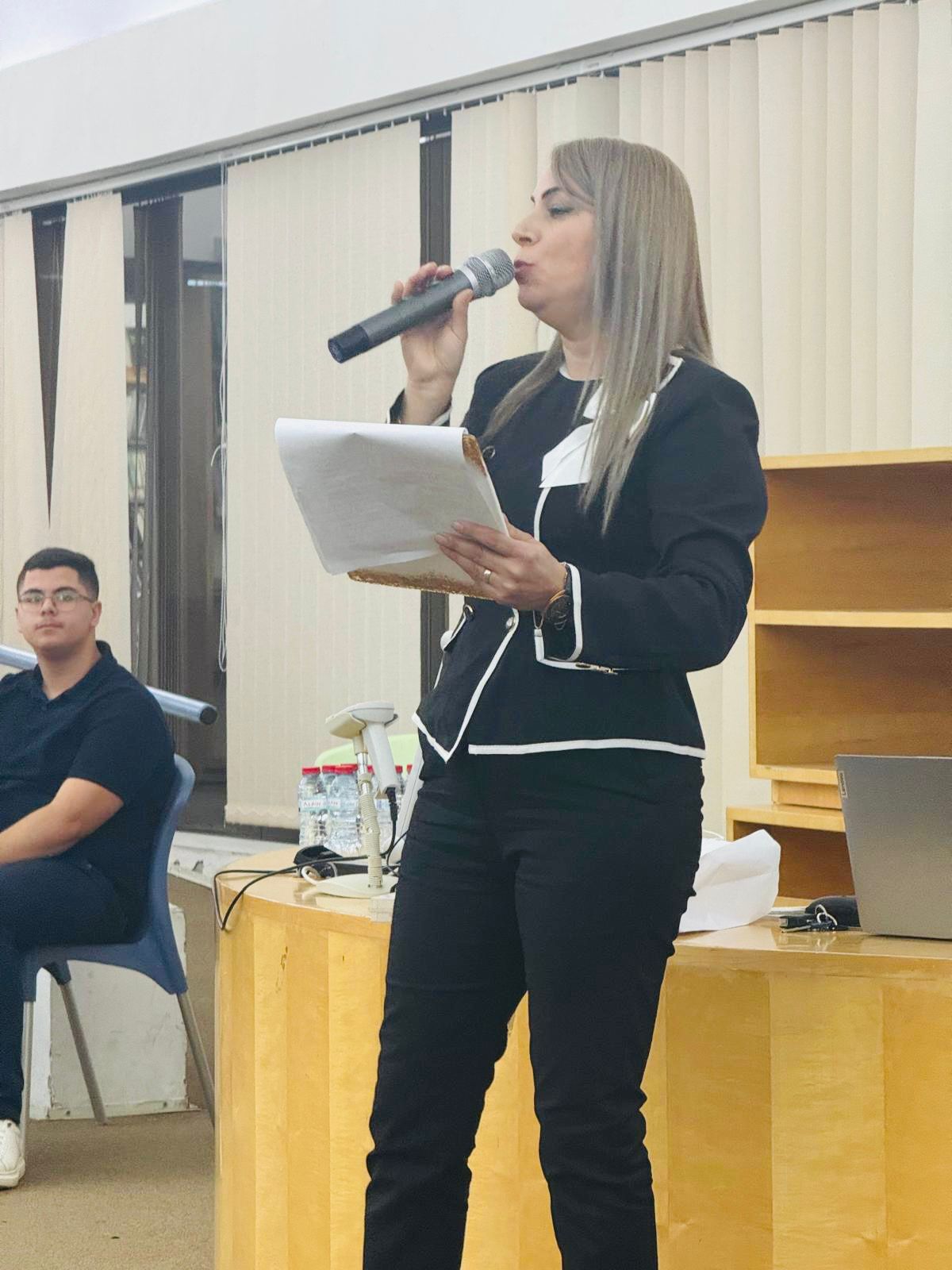 تلا ذلك مداخلة الأستاذ رياض مخّول بعنوان: "تقنية الحوار ودورها كرسالة في الوعي التربوي والإنساني" تحدث عن بناء جسور التواصل عبر الحوار، مسلطًا الضوء على قيمته في تعزيز الانفتاح والتفاهم داخل المجتمع. وقد لاقت مداخلته اهتمامًا واضحًا من الضيوف الذين تميّزوا بحضورهم النوعي من مثقفين ومعلمين وجامعيين.