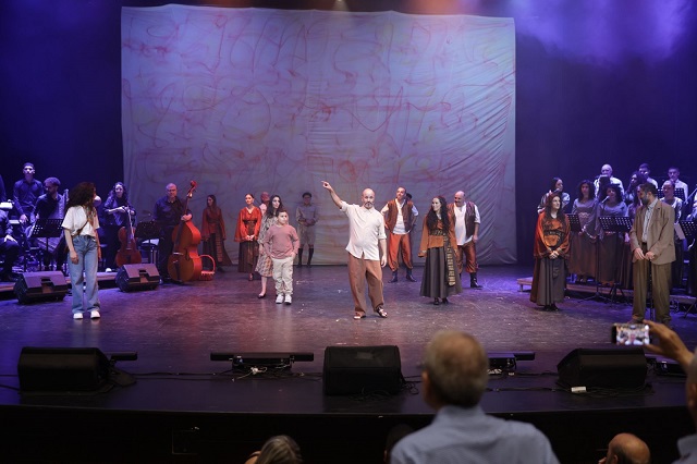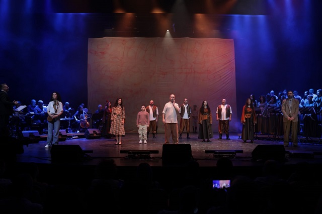 ولمدة ساعة ونصف من الزمن أبدع جميع من شارك في هذا العمل فادخلوا البهجة والسرور الى قلوب الحاضرين بأغاني الشعب التي يحبها وجزء من تراثه وروايته، وأحيانا بعرض لوحات درامية موسيقية راقصة حزينة حنونة لحب وحياة بريئة دُمرت من قبل الحرب والتشريد والتهجير.
