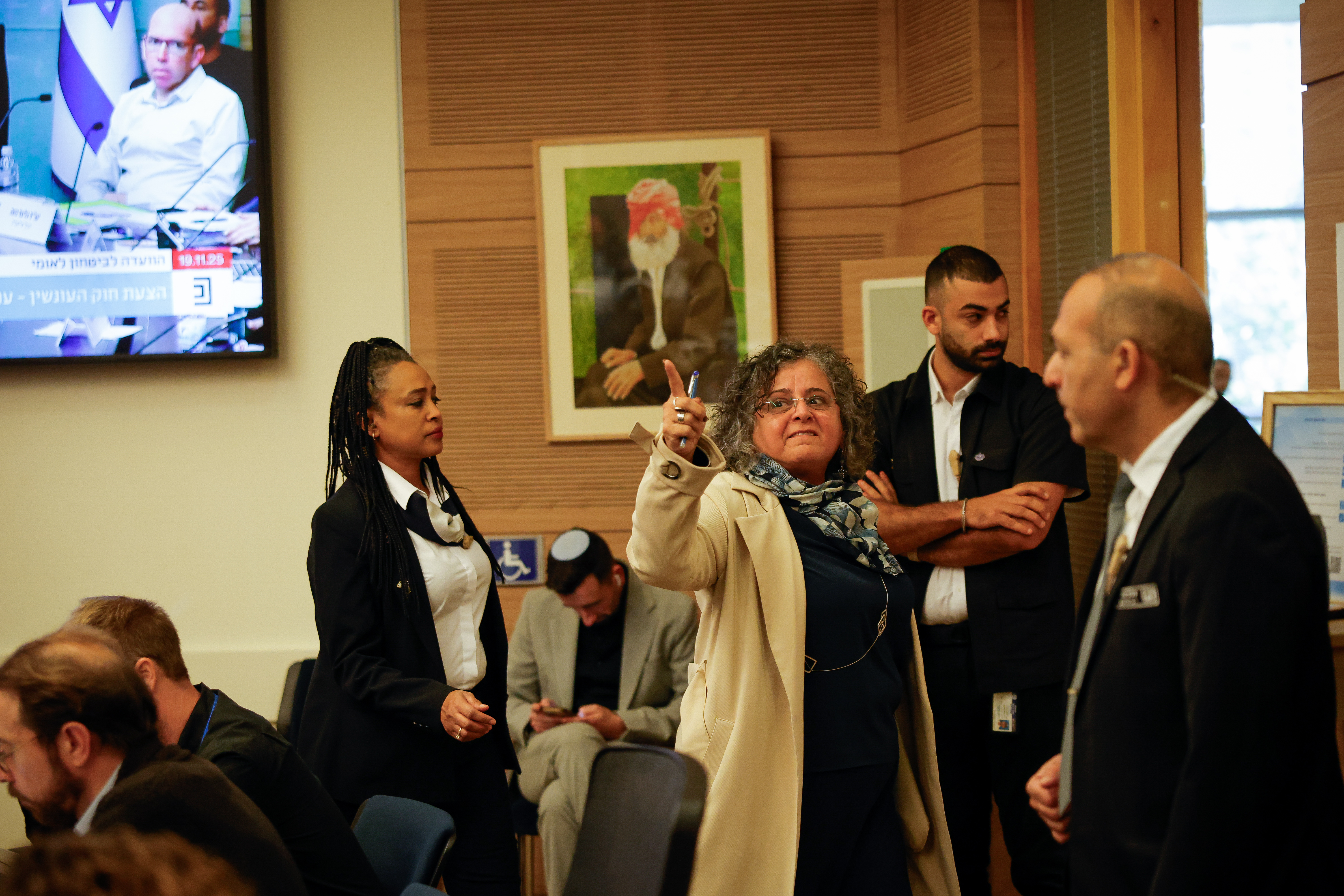 كما تخلل الجلسة صدام بين عضو الكنيست عن الجبهة عايدة توما سليمان، وعضو الكنيست ليمور سان هار ميلخ والوزير بن غفير، وكذلك عضو الكنيست جلعاد كريف من حزب العمل، اذ قال الوزير بن غفير لعايدة توما سليمان: " أنت تخشين ان يتم تطبيق القانون على اصدقائك"، حينها ردت عليه توما سليمان: "أنت داعم للارهاب"، فقالت لها سان هار ميلخ: "اذهبي لجنازات المخربين"، فيما وصف عضو الكنيست جلعاد كريف الوزير بن غفير بـ "وزير البقلاوة"، بعد ان قام بن غفير بتوزيع البقلاوة في الكنيست الأسبوع الماضي على اثر التصويت على القانون بالقراءة الأولى.