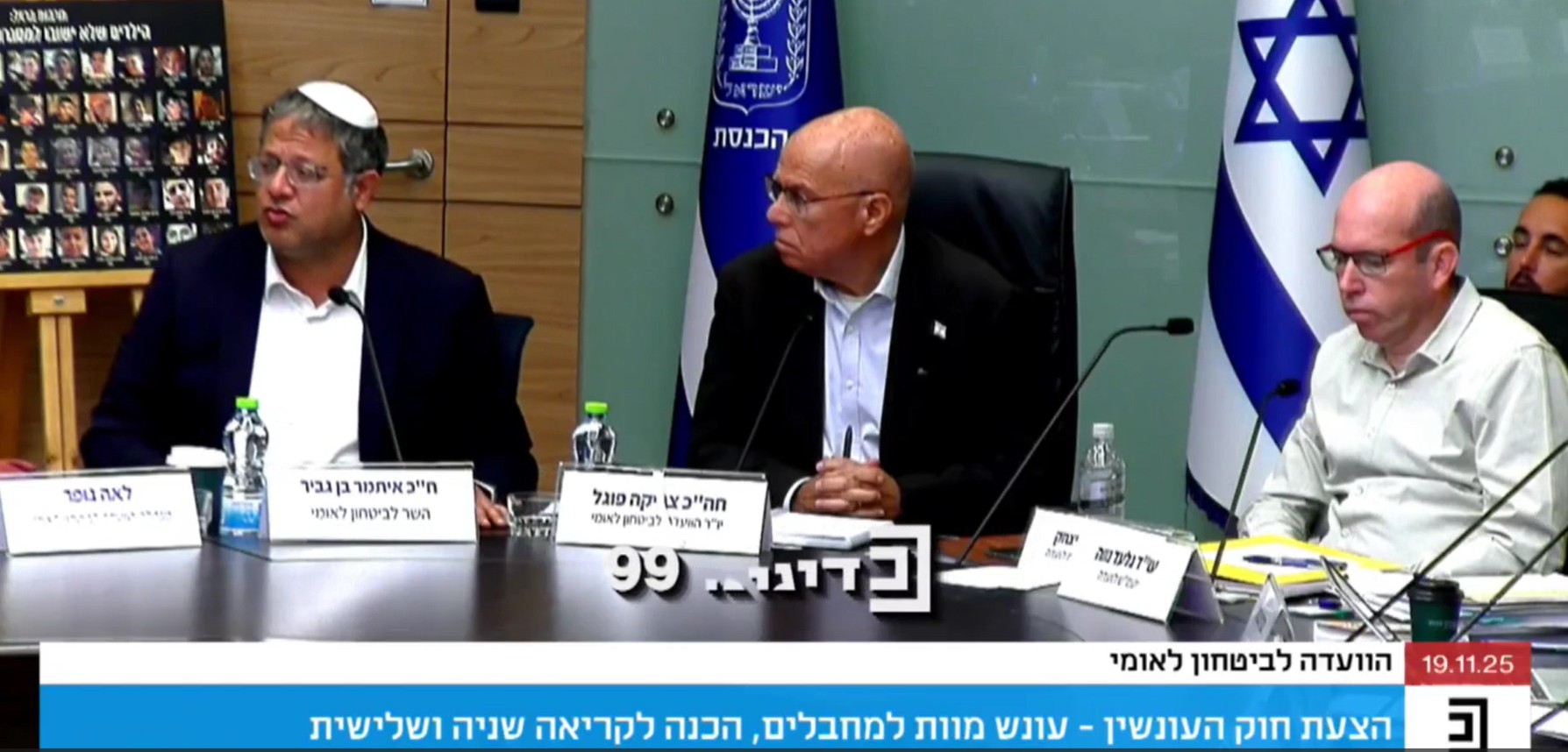 شهدت جلسة لجنة الأمن القومي البرلمانية التي انعقدت اليوم الأربعاء في الكنيست أجواء عاصفة في ظل مناقشة قانون الإعدام لمنفذي العمليات الذي صادقت عليه الكنيست بالقراءة الأولى، الأسبوع الماضي.