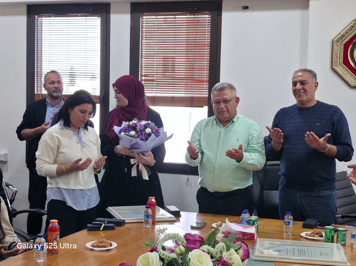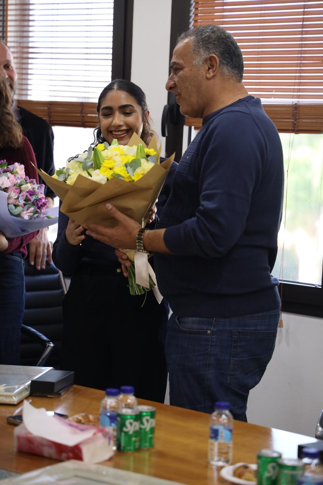 إلى جانب مدير المدرسة الأستاذ أيمن اغبارية، والمربية رنا طيارة، وعدد من أفراد الطاقم.