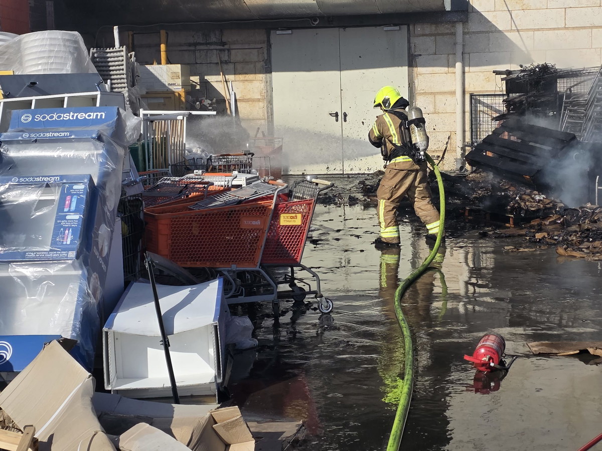 "عملت طواقم الاطفاء والانقاذ على إخماد النيران التي اشتعلت في المخزن خارج المجمّع في شارع موشيه بالمدينة وتم تفريغ الدخان بواسطة الأنظمة الأوتوماتيكية، ولذلك لم يتم إخلاء المجمّع من المتواجدين، ولا توجد أي خطورة في المكان أو أي منع من الوصول إليه". حسب البيان