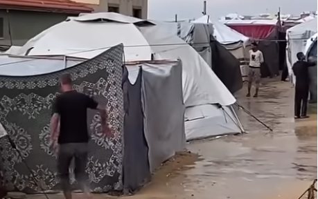 بيّنت مصادر إعلامية، أنّ عشرات الخيام التي تؤوي نازحين غرقت من جرّاء السيول في منطقة المواصي بمدينة خان يونس جنوبي قطاع غزة، وأفادت طواقم الإنقاذ بأنها تتعامل مع عشرات الخيام في المخيمات، بعد تعرضها للغرق في عدة مناطق، فيما ذكر نازحون أن مئات الخيام غرقت وسط برك المياه الناتجة عن تجمع الأمطار.