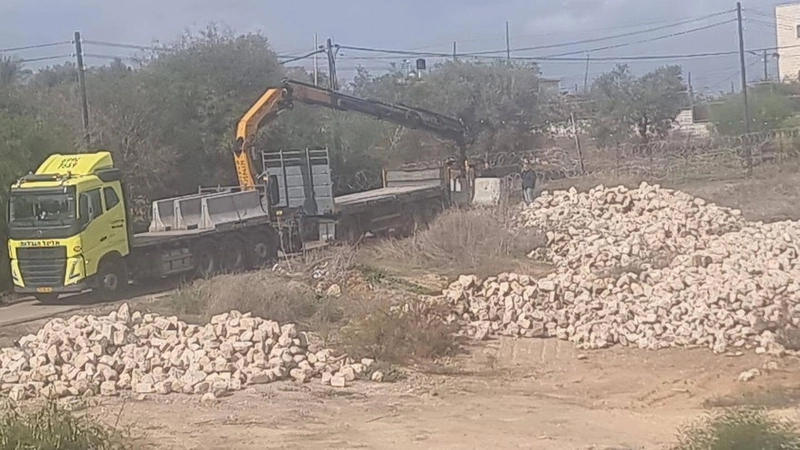 صور - الشرطة تغلق مدخلين لقرية سالم بحاجز إسمنتي