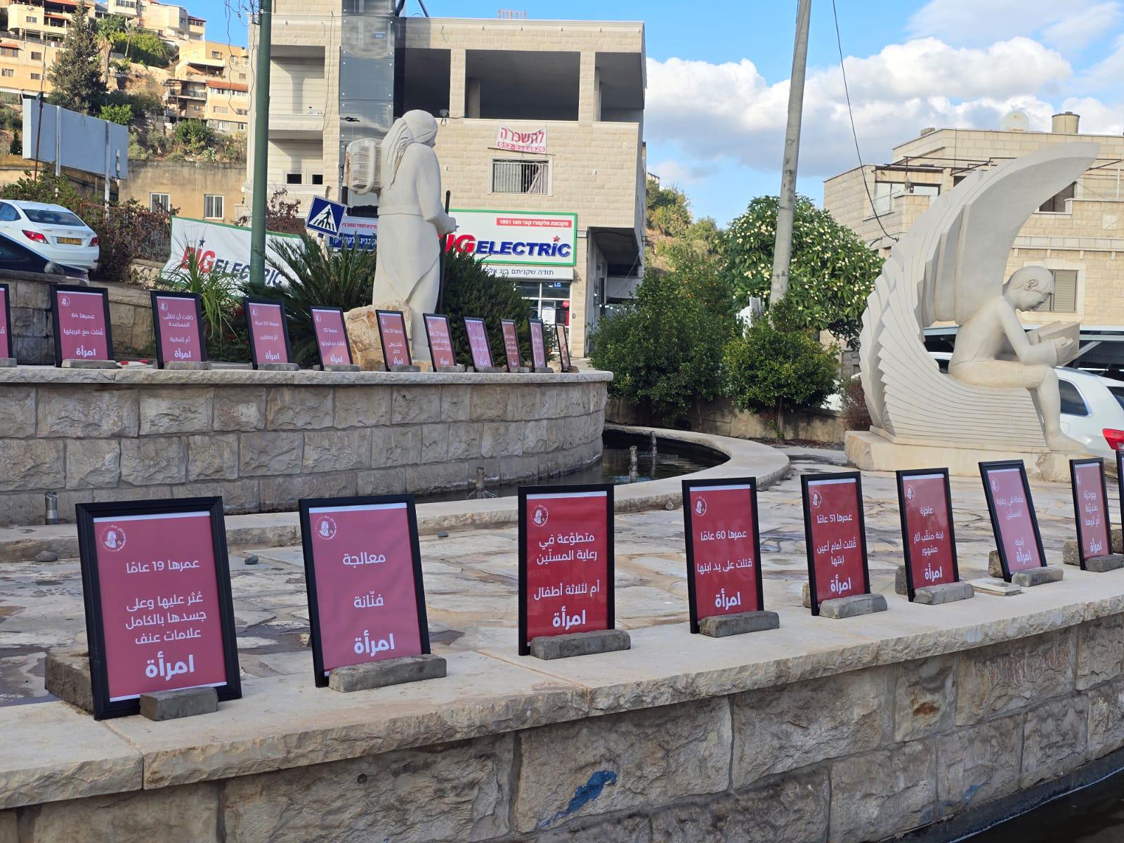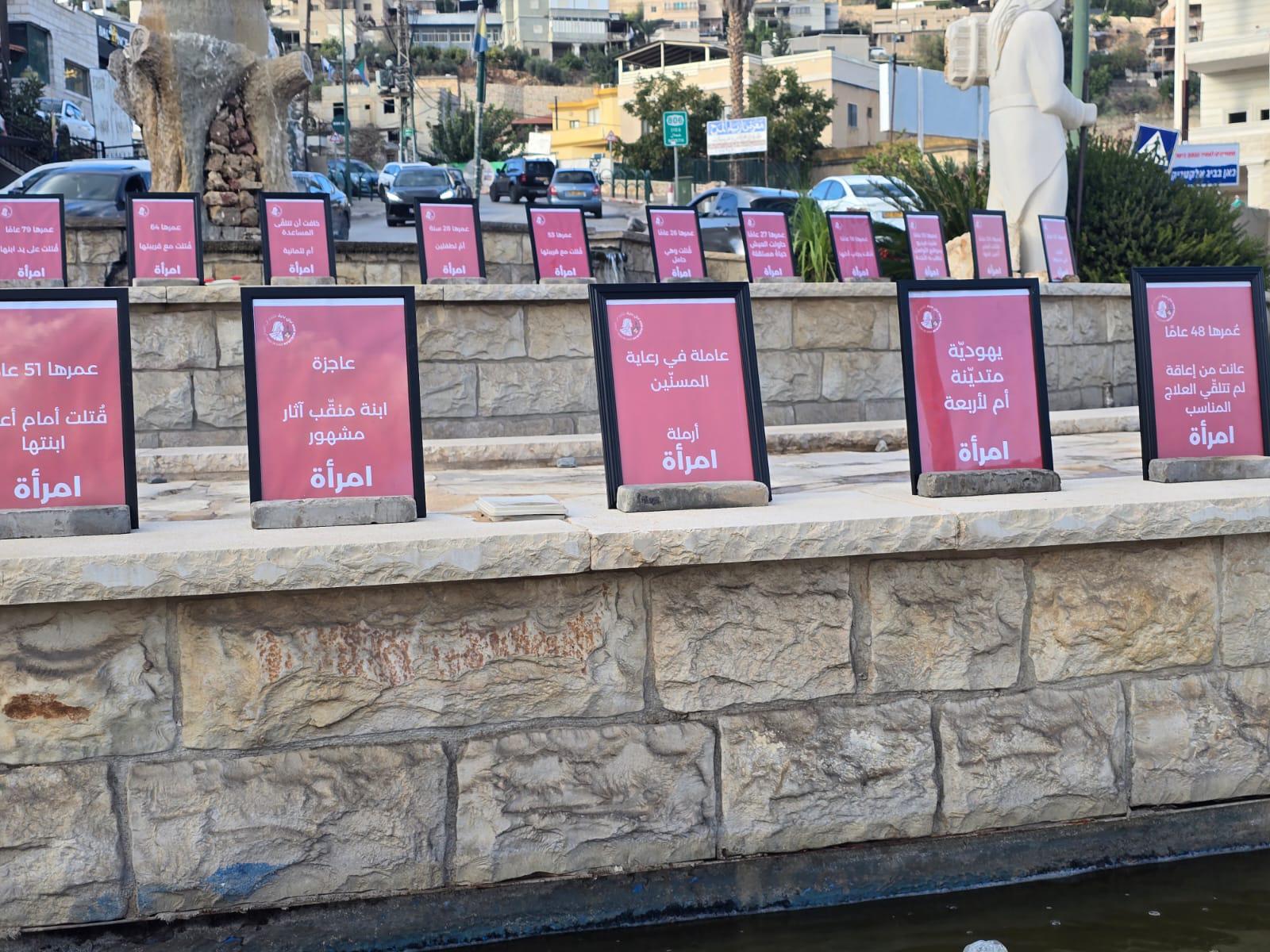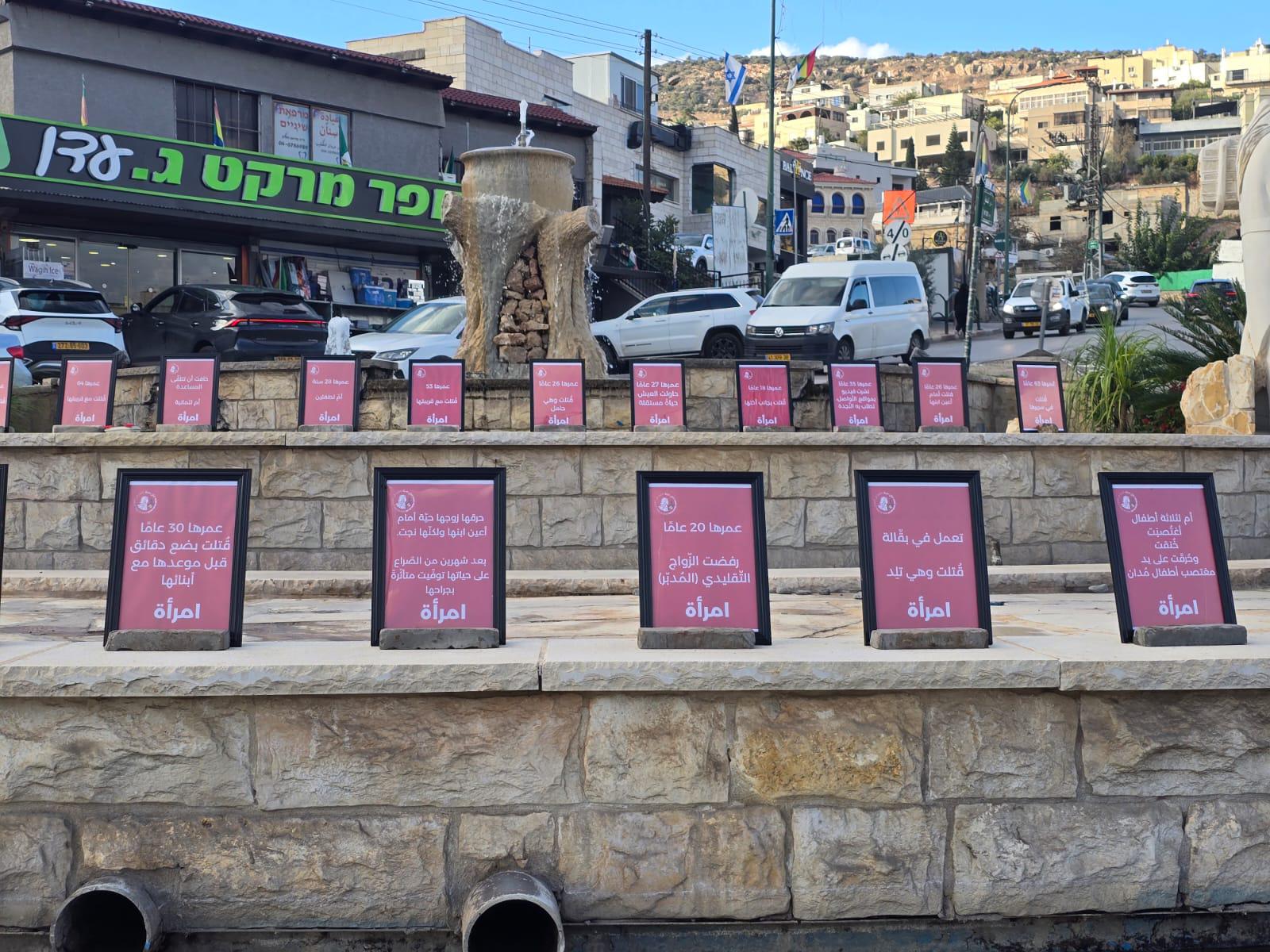 بمناسبة اليوم الدولي لمناهضة العنف ضد النساء، أُقيمت اليوم الثلاثاء في 7 بلدات درزية في الجليل، الكرمل وهضبة الجولان عروض احتجاجية تتضمن قصص 35 امرأة قُتلن منذ بداية العام.