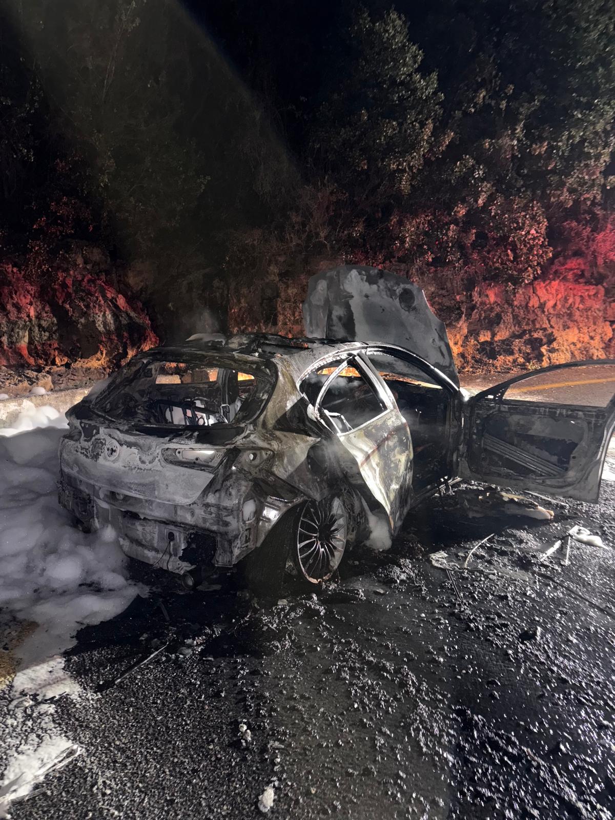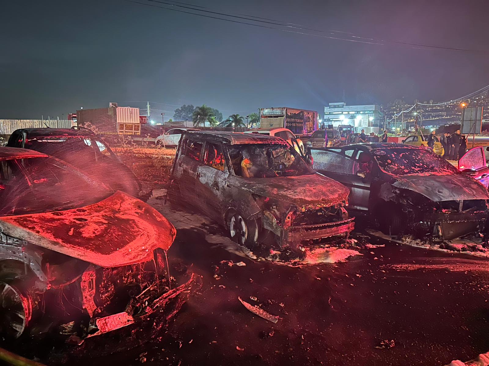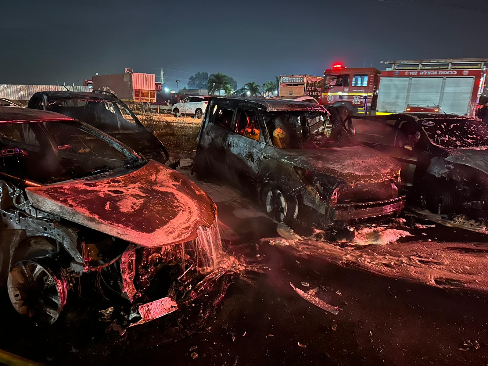 في بيان : " تم إخماد النيران باستخدام المياه ومواد خاصة، ومنعت طواقم الاطفاء انتشار الحريق إلى سيارات إضافية قريبة".