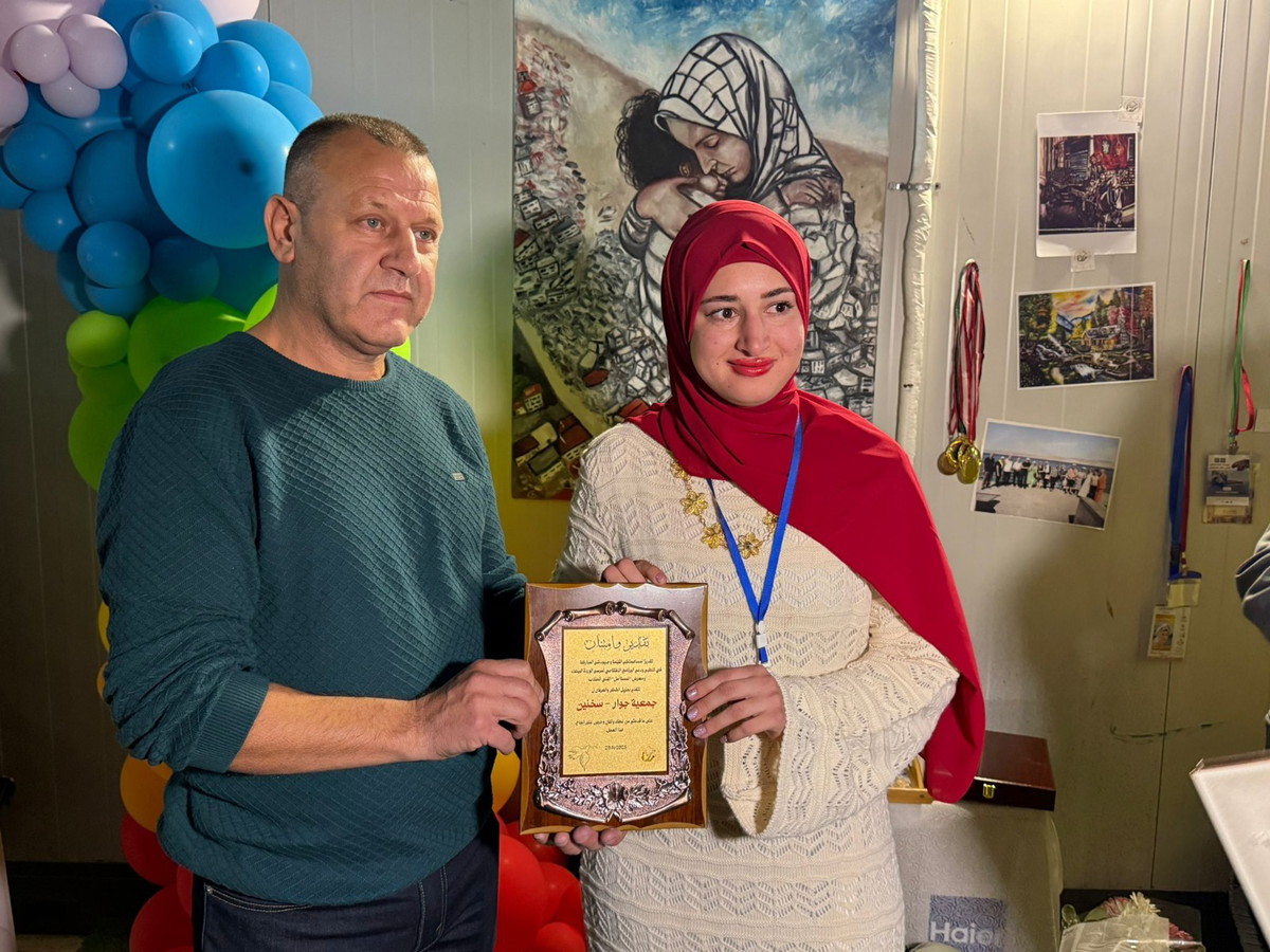وتابع البيان: "كانت الكلمة المهم للفنانة فاتن أمارة والتي تحدثت بكلمة مليئة بالمشاعر الجياشة وهي ترى بعينيها الجمهور الكبير المتذوق للفنون التشكيلية، وقدمت شكرها للمجلس المحلي، ولجمعية " جوار في الشمال" وللطلاب المحتفى بهم وأهاليهم، والزملاء من الفنانين الذين حضروا لدعم زميلتهم في باكورة الأعمال للمرسم. جمعية جوار في الشمال سخنين هي جمعية غير ربحية تأسست بهدف دعم الفن والثقافة والحضارة والتراث".