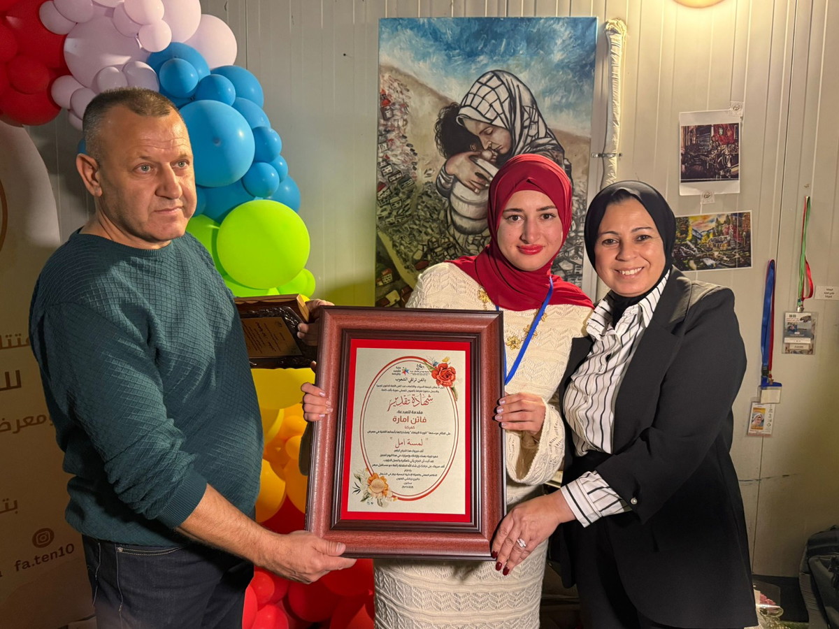وجاء في البيان: "تلوح في سماء القلب نجومٌ كثيرة لا يخفت بريقها أبداً لأنها تحمل قلوباً أصيلة لا تتبدل للفنانة المبدعة نقول نبارك لكم بحرارة على إنجازاتكم المبهرة في هذا اليوم المميز. لقد أثبتم أن النجاح يأتي بالمثابرة والعمل الدؤوب. ألف مبروك لهذا النجاح الباهر فهو نتيجة جهدك وإرادتك وإصرارك تستحقين هذه النتيجة الرائعة والمشرفة لقد كانت مثابرتك وإبداعك في العمل مثالاً يحتذى به. أخيرا لا بد من تشجيع أطفالنا وطلابنا على حب الفن والإقبال عليه عبر عبارات تشجيعية للرسم تقوي فيهم حب الفن وتجعلهم يستمرون فيه ويتميزون في إتقانه. المشاركون اليوم أنتجوا لوحات وابداعات تفوق الخيال ولا تقل في جودتها عن لوحات كبار الرسامين".