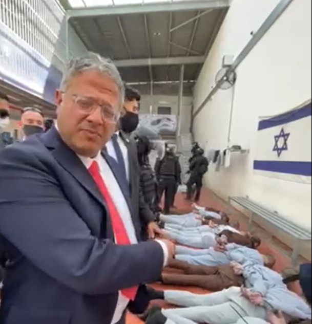 بن غفير ينشر فيديو من داخل أحد السجون الى جانب أسرى فلسطينيين مقيدي الأيدي: ‘الاعدام لمنفذي العمليات - الآن‘ | الفيديو للتوضيح فقط