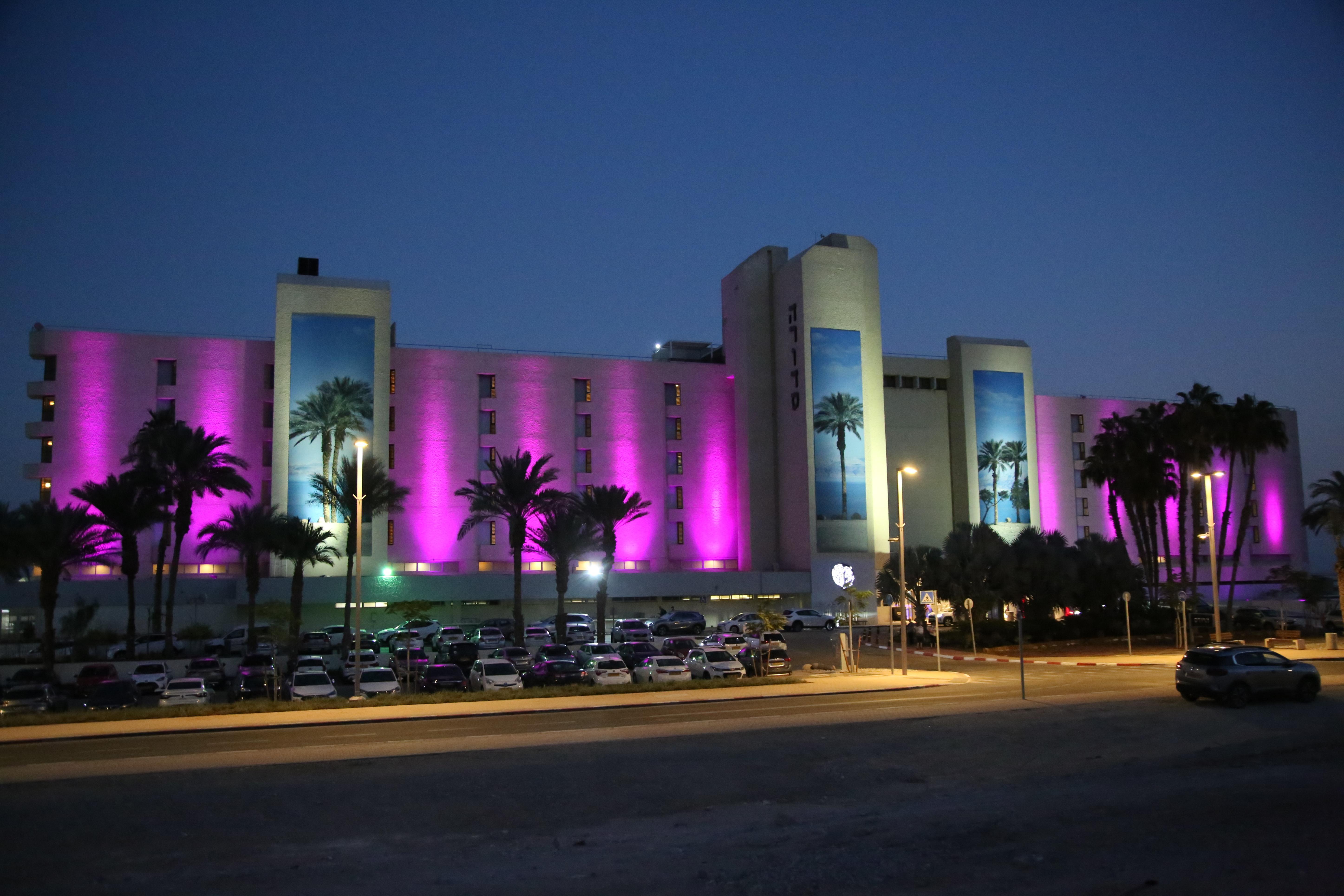 الكلية الأكاديمية تل-حاي، الواقعة على حدود لبنان، عادت قبل نحو شهر إلى حرمها الشمالي بعد إخلاء طويل، وتضيء الحرم الجامعي باللون البنفسجي.