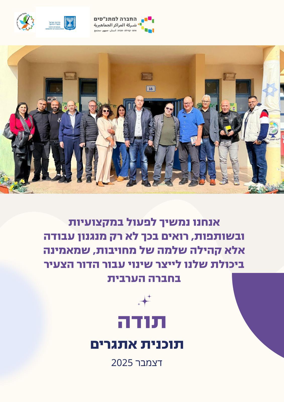 جاء هذا التقدير بعد زيارة للمدرسة قام بها كل من: باروخي مچال- مدير ادارة المجتمع والشبيبة في وزارة التربية والتعليم ، حنان سرحان - مفتشة وزارة المعارف في لواء الشمال ، محمد سواعد - مفتش الشبيبة في الوسط البدوي ، عبدو زبيدات - مدير قسم المعارف بالمجلس المحلي بسمة طبعون ، نضال بصول - مدير قسم الشبيبة بالمجلس المحلي بسمة طبعون وغيرهم .