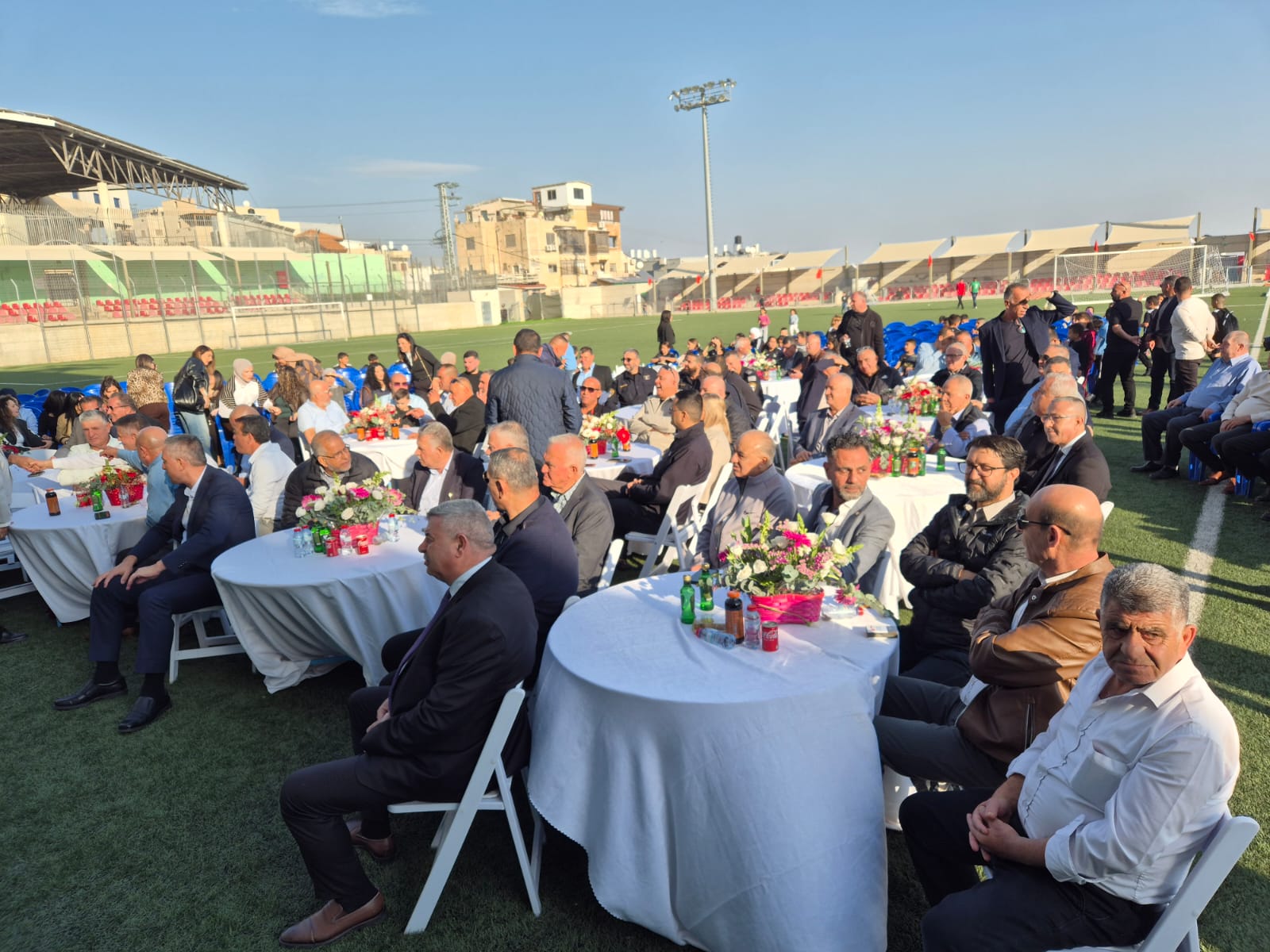 والقاعة الرياضية المتربة بحضور ممثلي الوزارات والمؤسسات الحكومية، عضو الكنيست النائب الدكتور "منصور عباس"، رؤساء سلطات محلية من البلدات المجاورة، شخصيات رياضية وإجتماعية بارزة، المجلس المحلي بكافة هيئاته وطواقمه الممثل برئيسه المحامي "محمد هاني أبوليل" ، النواب والأعضاء، طاقم المساعدين والمستشارين، مدراء أقسام، موظفين وموظفات المجلس المحلي، ادارة وأعضاء جمعية البيت المهلاوي للرياضة والثقافة، إدارة فريق هبوعيل أبناء عين ماهل، أولاد وبنات أكاديمية كرة القدم والفروع الرياضية الأخرى، أعضاء ومسؤولين نادي الشبيبة العاملة والمتعلمة، ولفيف من أهالي القرية.