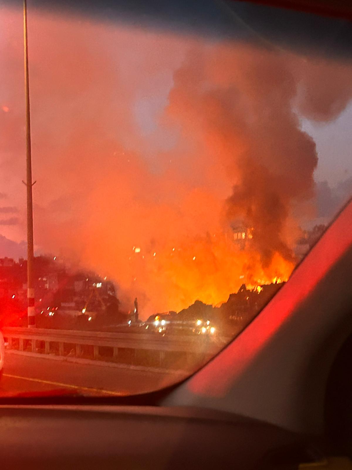 واضاف كايد ظاهر : " الحريق يُنتج كميات كبيرة من الدخان المرئي من مسافات بعيدة، ومن المتوقّع أن تستمر أعمال الإخماد لساعات طويلة إضافية".