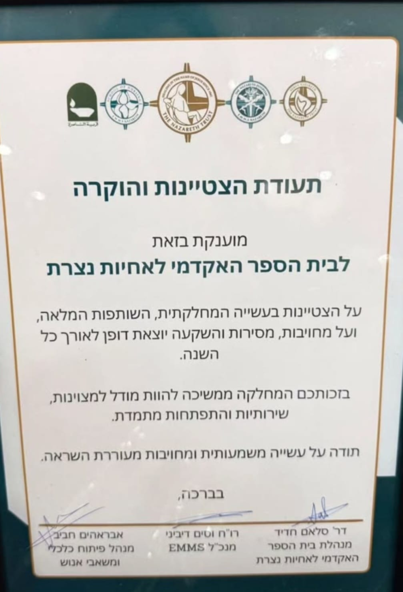 طاقمنا حصل الاسبوع الماضي على شهادة تميز من قبل موسسة ا.م.م.س EMMS