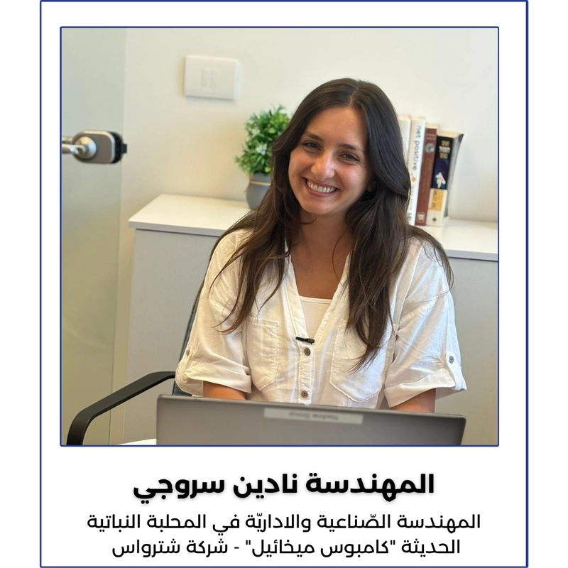تعمل نادين سروجي (27 عامًا) منذ عام ونصف العام في المحلبة النباتية الحديثة "كامبوس ميخائيل" وهو المصنع الذي يحمل اسم مؤسس الشركة العملاقة "ميخائيل شتراوس" وهذا الصّرح الضخم هو عبارة عن منشأتين إحداهما لمنتجات الحليب والألبان، والمنشأة الأخرى تم افتتاحها مؤخرًا، وهي مصنع يختص ببدائل الحليب الذي تعمل فيه المهندسة نادين سروجي اليوم بوظيفة مرموقة.