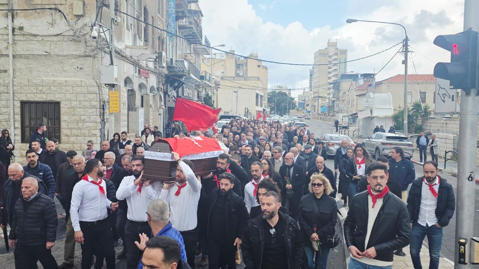 وانطلق موكب التشييع من نادي الحزب في حيّ وادي النسناس في حيفا، باتجاه كنيسة السيدة “بيت النعمة” في شارع يافا، حيث من المقرر أن تُقام مراسم الجنازة، قبل أن يُوارى الثرى في مقبرة الروم الكاثوليك في كفار سمير.