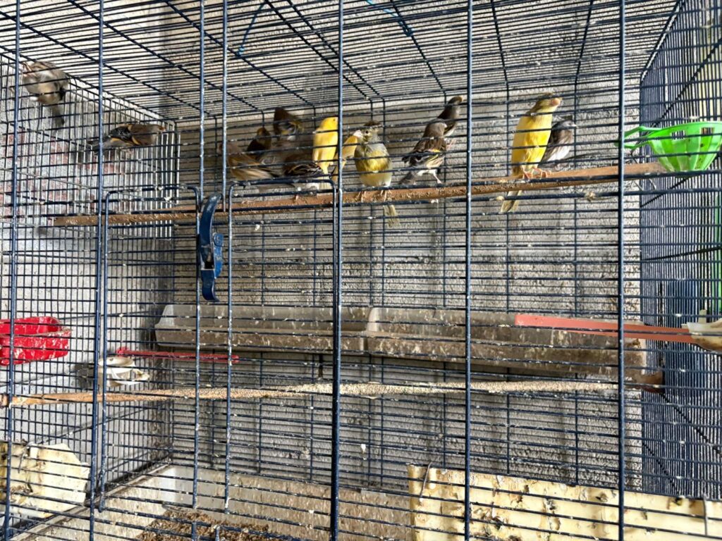 من بين الطيور التي عُثر عليها: نحو 50 حسّوناً محلياً، وحسّونات مستوردة، وطيور من نوع بندوك، وموزمبيك، وكناري يُشتبه بأنها استُخدمت للتهجين مع الحسون بهدف إنتاج «بندوك» إضافية.