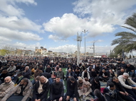 فيما جرت الصلاة في إطار الإضراب التي تشهده المدينة بسبب تصاعد العنف والجريمة فيها، دون أن يكون هناك رادع أو رقابة، حيث أغلقت المحال التجارية في المدينة أبوابها بسبب "الخاوات" أو الاتاوات ودون أن يكون هناك عقاب يوقف هذه الجرائم.