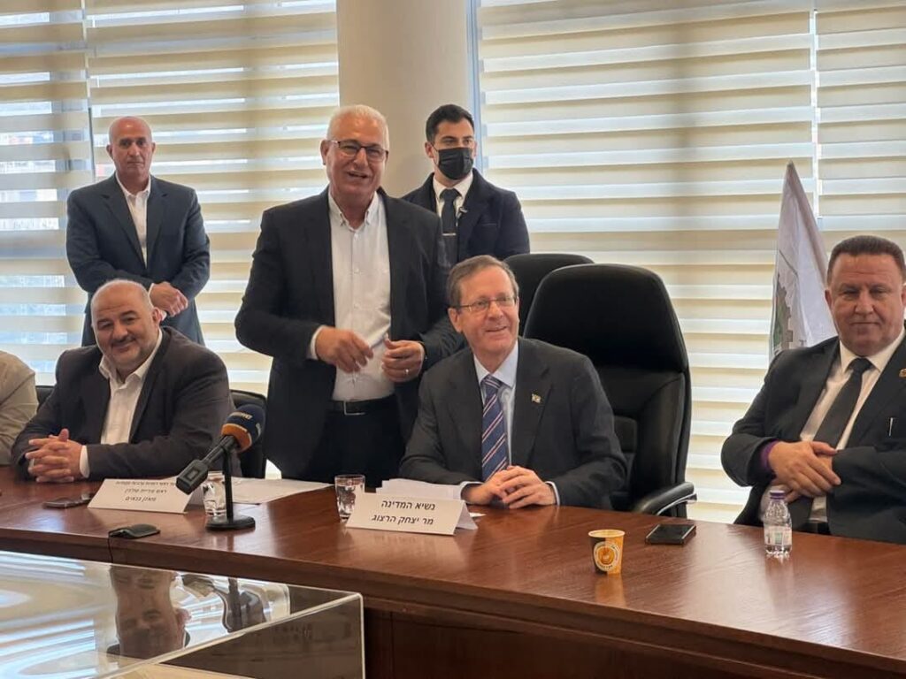 قام رئيس الدولة يتسحاق هرتسوغ، صباح اليوم (الخميس) بزيارة إلى مدينة سخنين، والقى كلمة في دار البلدية، استخدم خلالها اللغة العربية، قائلا: "شلال الدم في المجتمع العربي يجب أن يتوقف،