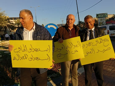 شهد موقع الجريمة النكراء التي تعرض فيها المحامي محمد نصار من عرابة للإصابة جلراء اطلاق نار امس في عرابة تظاهرة احتجاجية للمحامين من عرابة والمنطقة وهم يحملون الشعارات المنددة بالعنف والجريمة وكتب عليها :مع المحامي محمد نصار ضد العنف ،لا عدالة مع السلاح ،استهداف المحامي استهداف العدالة،