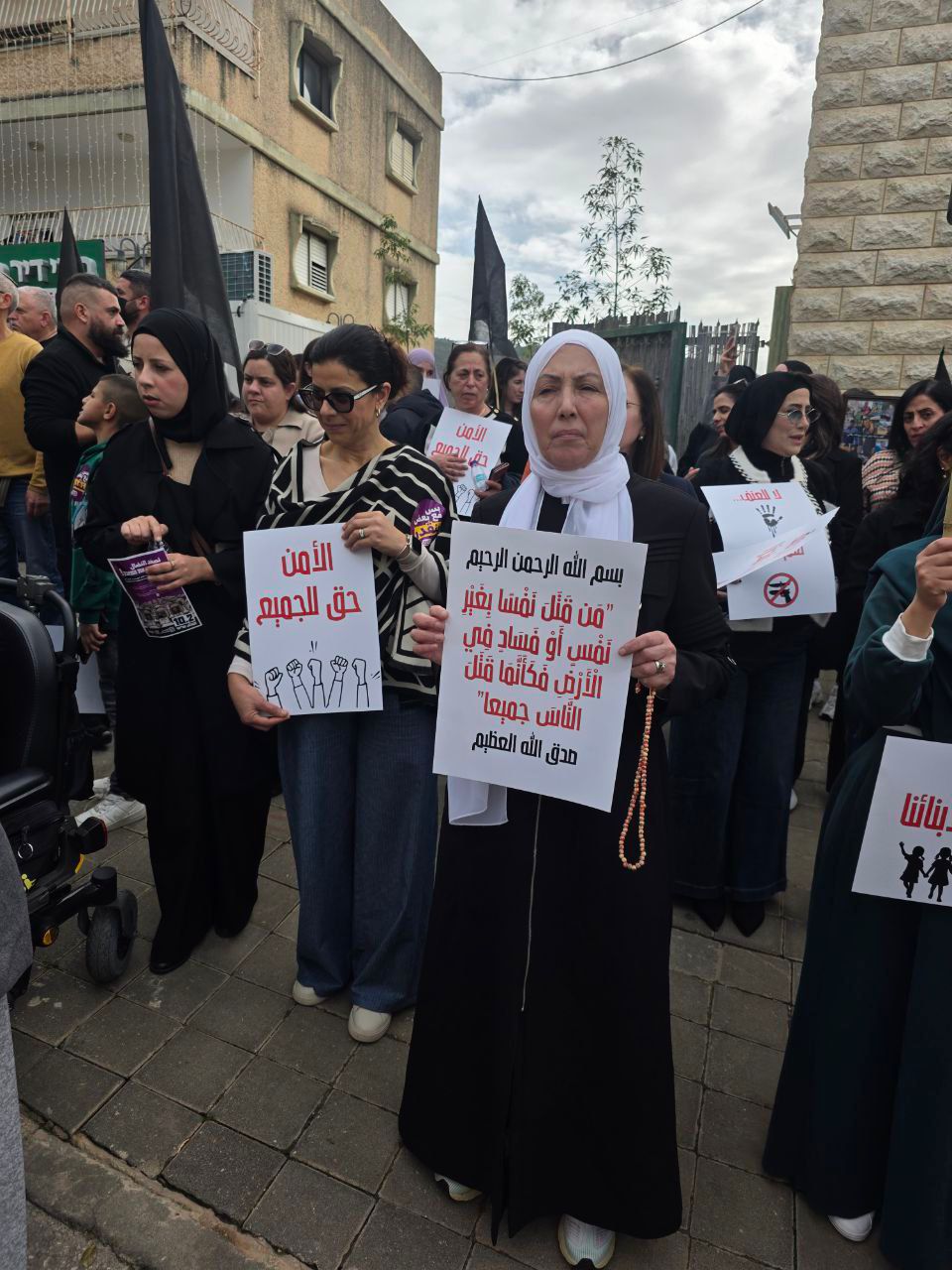 ورُفعت خلال المظاهرة شعارات منددة بالجريمة المنظمة وبسياسة الإهمال الرسمي تجاه ما يجري في المجتمع العربي بجانب صور ضحايا جرائم القتل.