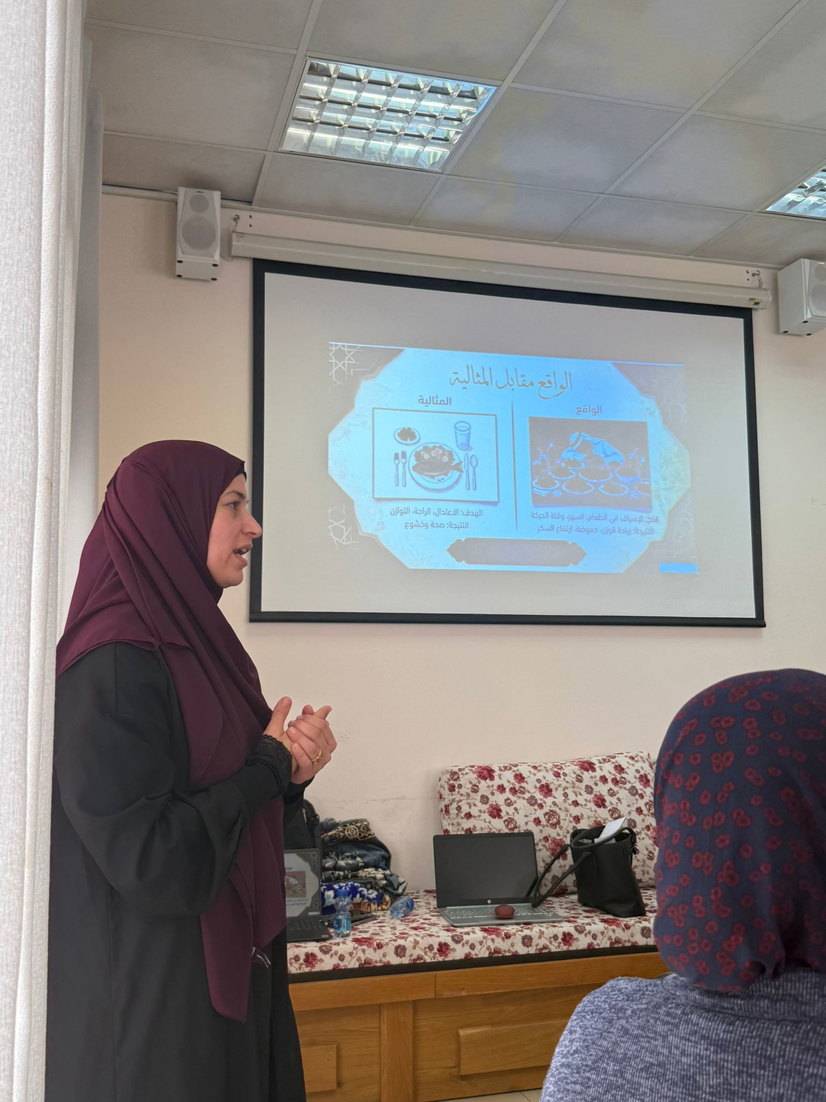 وتضمّن اليوم برنامجًا صحيًا غنيًا ركّز على الإرشادات الصحية للصوم والتغذية السليمة خلال شهر رمضان، مع الأخذ بعين الاعتبار الاحتياجات الصحية الخاصة لأبناء الجيل الذهبي. وقد قُدّمت محاضرات مهنيّة قيّمة من قبل أخصائية السكري فاطمة مدلج وأخصائية التغذية شذا أبو رقيّة، تناولتا خلالها إدارة مرض السكري أثناء الصيام، وتنظيم الوجبات الغذائية، واختيار نمط غذائي متوازن يضمن صيامًا آمنًا وصحيًا.